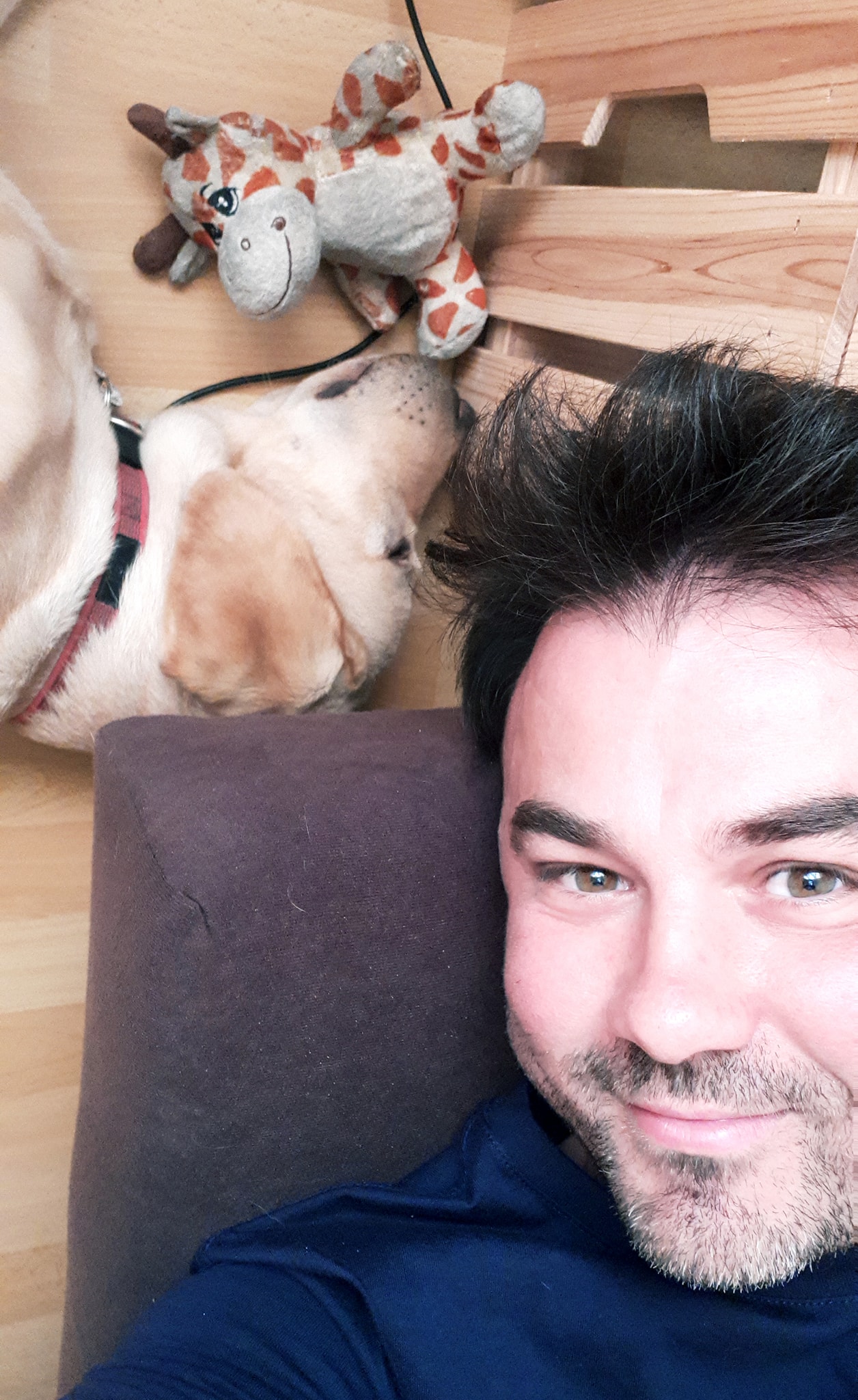 „Az ügyfeleim is imádják. Nátánnak van egy saját szőnyege az irodában, és békésen ott fekszik, ha valaki érkezik hozzám. Viszont nagyon rafinált: néha felkel és úgy tesz, mintha csak körbenézne, de közben mindenkitől lop egy kis simogatást. A munkán kívül is rengeteg szeretet ad, miközben segít egészségesebben is élni. Sokszor megyünk sétálni, és most azon gondolkodom, hogy újra elkezdünk együtt futni. Tavasszal már néhányszor kipróbáltuk, és alkalmanként akár hat kilométert is lefutottunk együtt, amit nagyon élveztünk. Én azt gondolom, hogy vele még jobban ki tudom használni a mindennapok ajándékait, képes vagyok kihozni az életből a maximumot” – zárta gondolatait Zsolt.