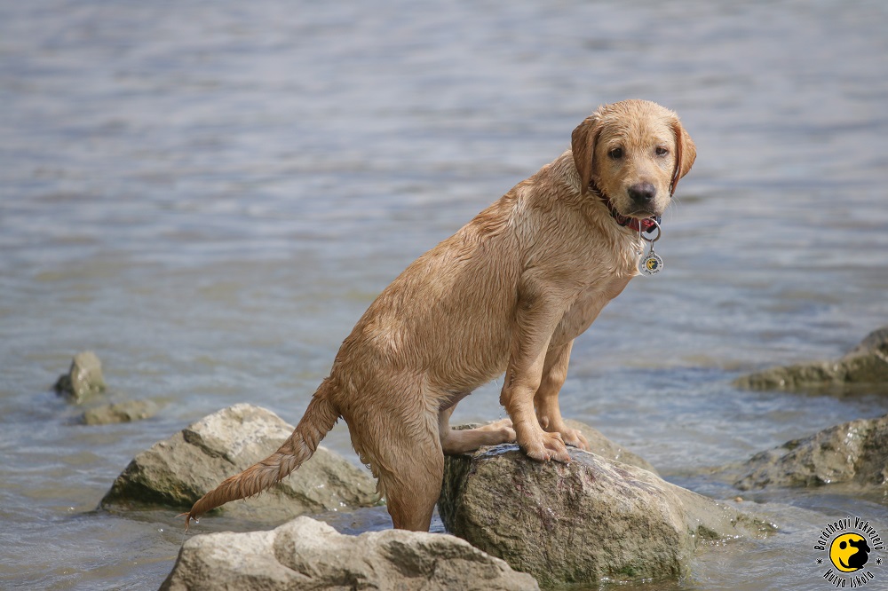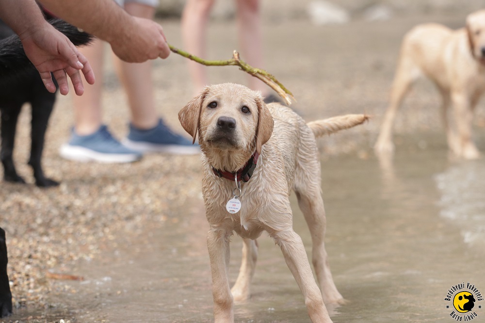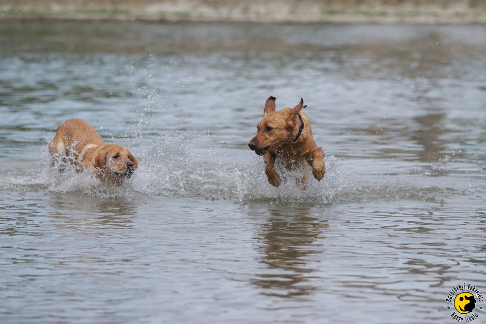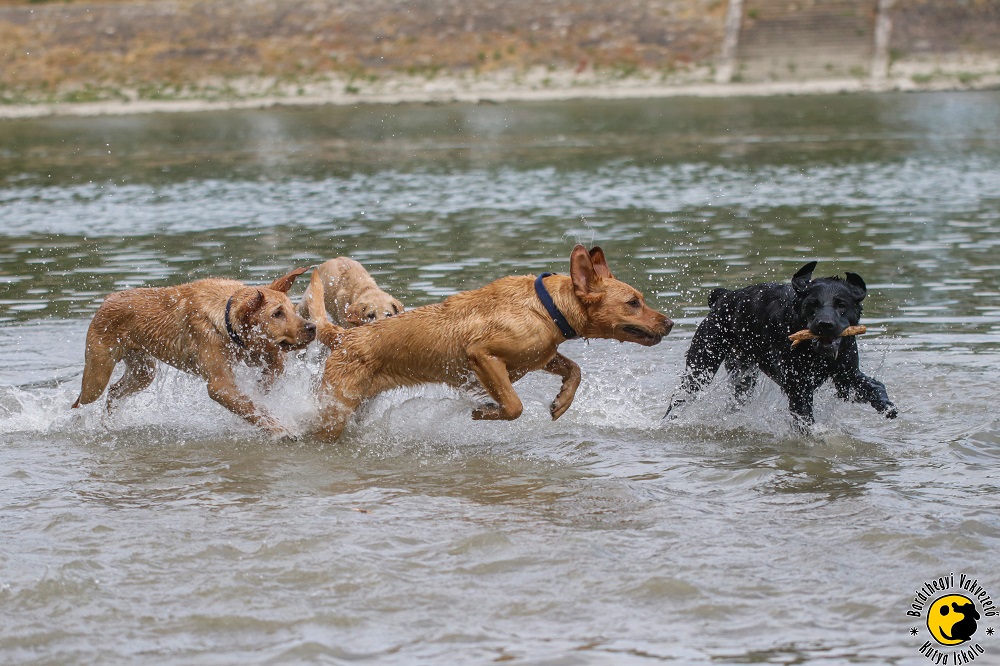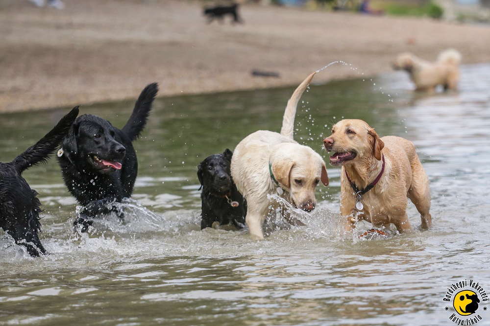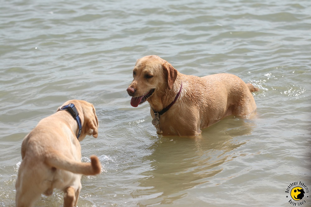 Sokak számára ez volt az első fürdőzés, de Topáz, Tulipán, Tramini és testvéreik bátran viselkedtek és nagyobbacska tanulóinkat követve, azonnal beszaladtak a direkt erre a célra kialakított partszakasz sekély vízébe. Hatalmas játék kezdődött, repkedtek a botok, amiket Sámán, Serpa, és a többiek nagyon szívesen hoztak vissza kölyöknevelőik számára.