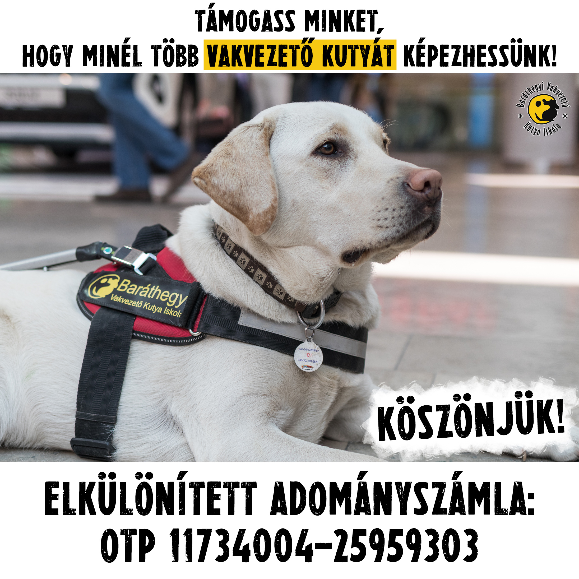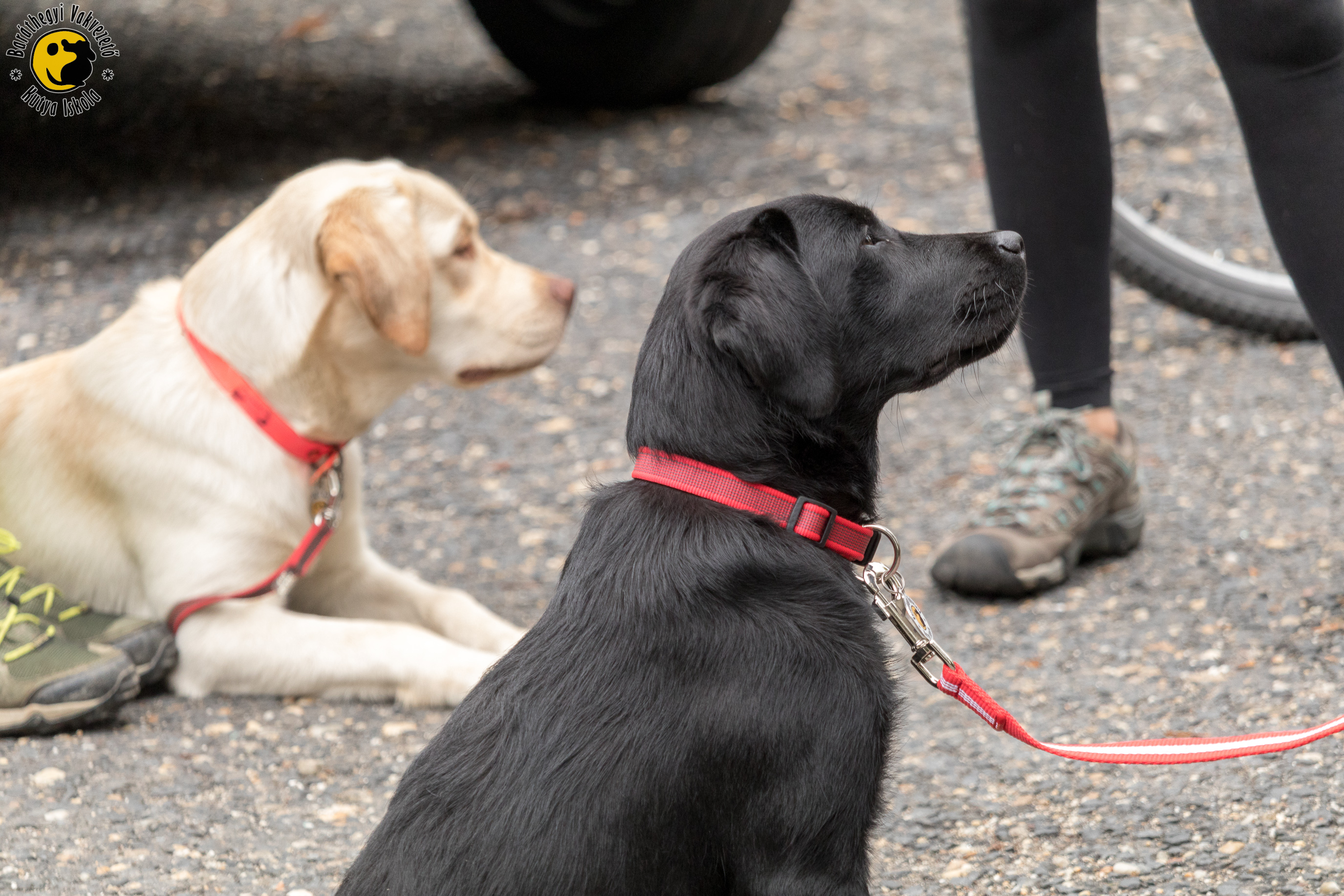 Egy vakvezető sosem zökkenhet ki, mindig figyelnie kell gazdájára. Kölyöktalálkozónkon gyakoroltuk, hogy maradjanak a kutyák nyugodtak, amikor egy idegen lép oda a gazdájukhoz.