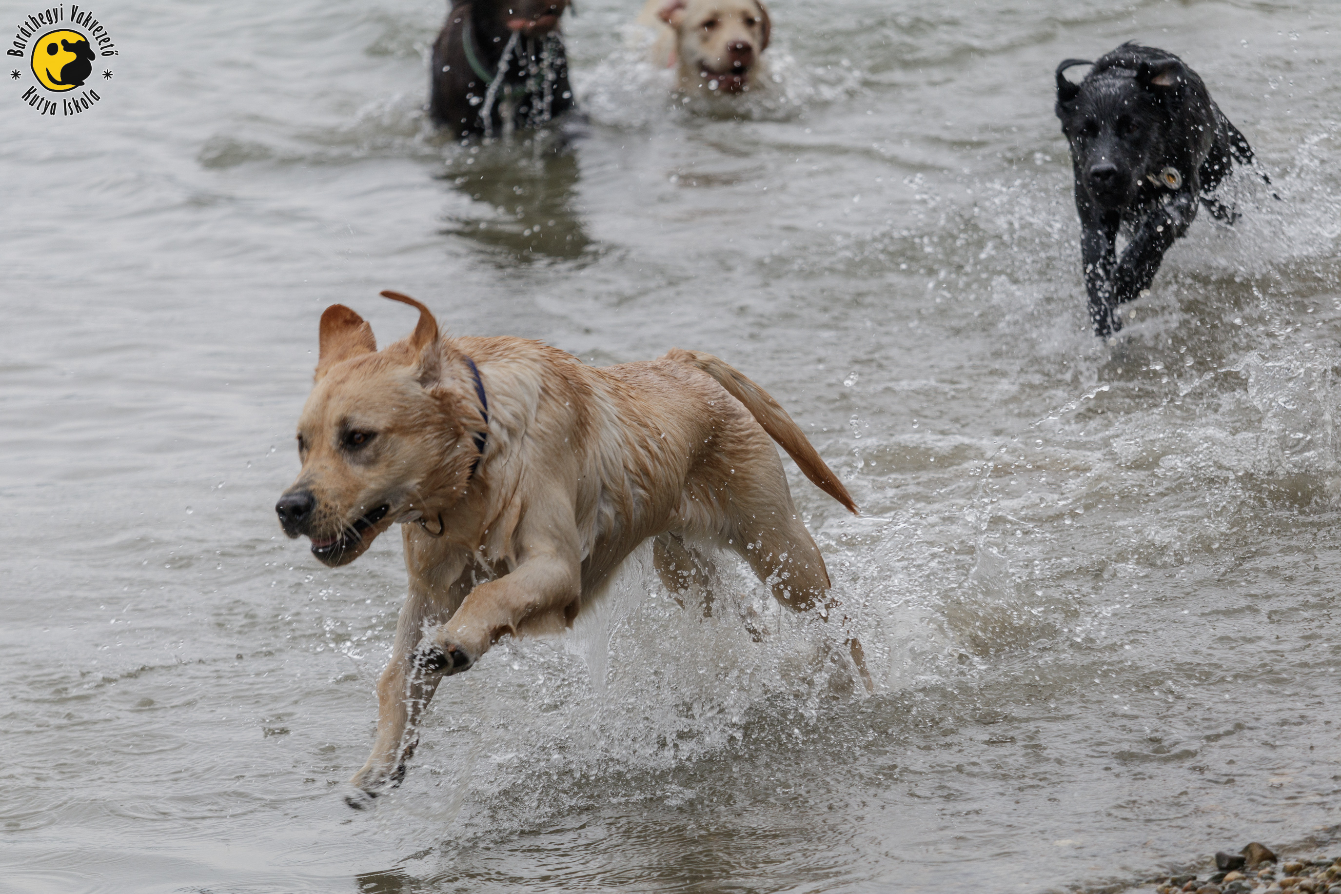 Kölyöktalálkozónkat ezúttal a Hajógyári-szigeten tartottuk, ahová nagyon sok vakvezető tanulónk ellátogatott. Ahogy máskor, úgy most is némi futkározással, fogócskázással kezdődött a program. Szerencsére nem esett az eső, nem is volt hideg, így nem okozott problémát kutyusainknak a pocsolyában való dagonyázás. Labradorhoz hűen majdnem minden kutyánk megmártózott a sárban.