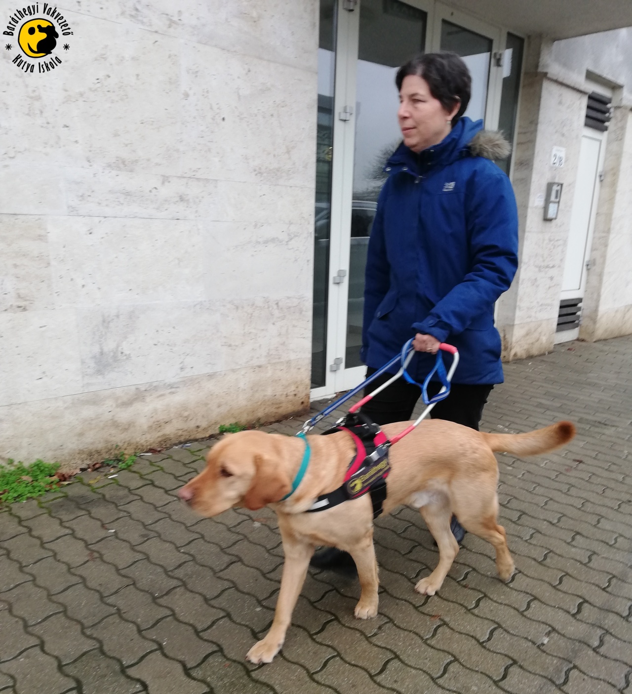 Serpa és Alexandra a 14. kerületben szaporázta lépteit, és közben ömlött rájuk az eső. A vizsgázók elé nagy feladatot állít az ilyen idő, hiszen a gazdik nehezebben tudnak a forgalom hangjai alapján tájékozódni: