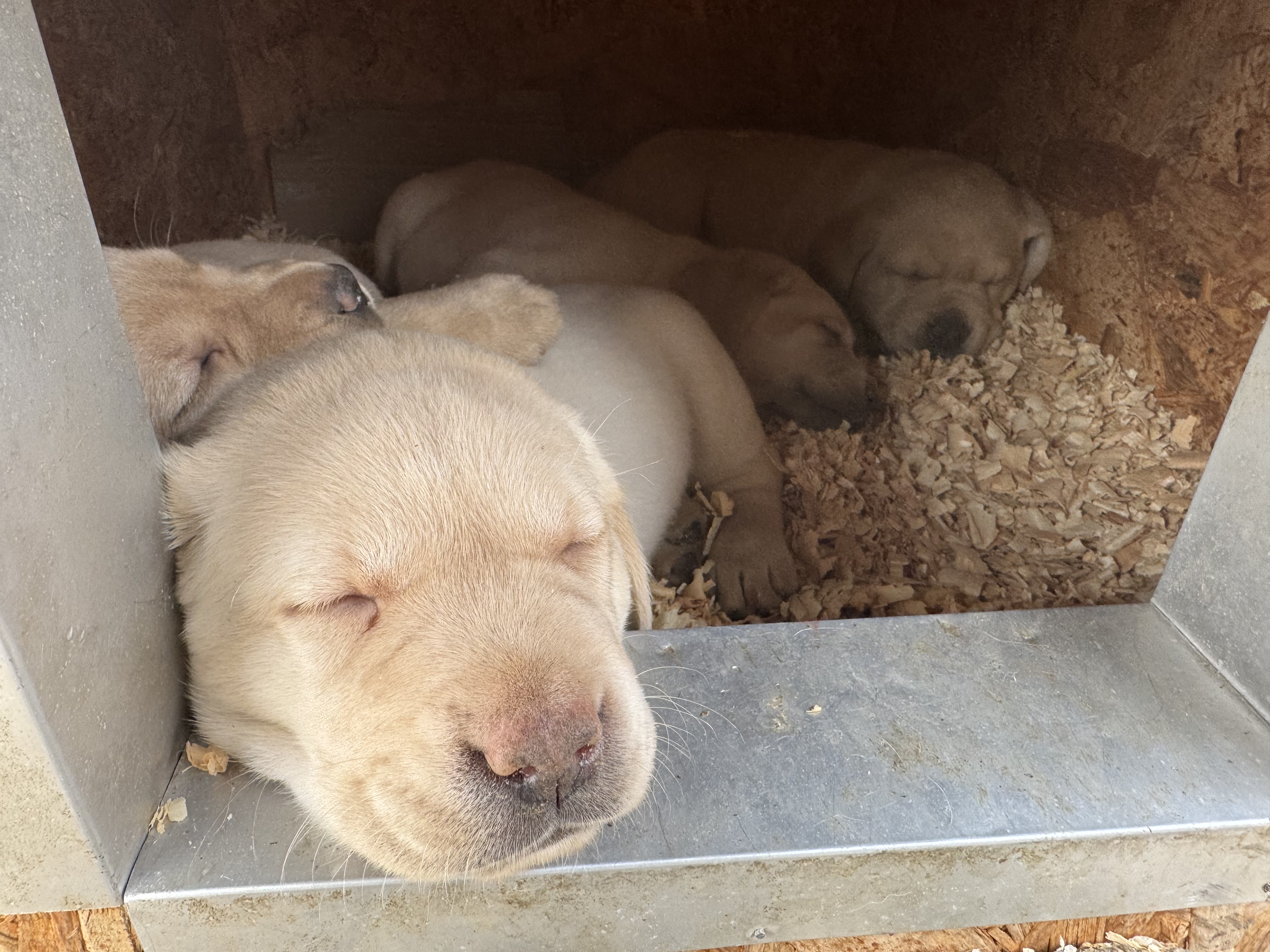 “Már behívhatók a kölykök, cuppogásra odajönnek hozzám. Sokat randalíroznak kint, de gyakran vannak a meleg kutyaházban, és ott folytatják a játékot, majd elalszanak” – mondta Leidgeb Melinda, a kölykök gondozója.