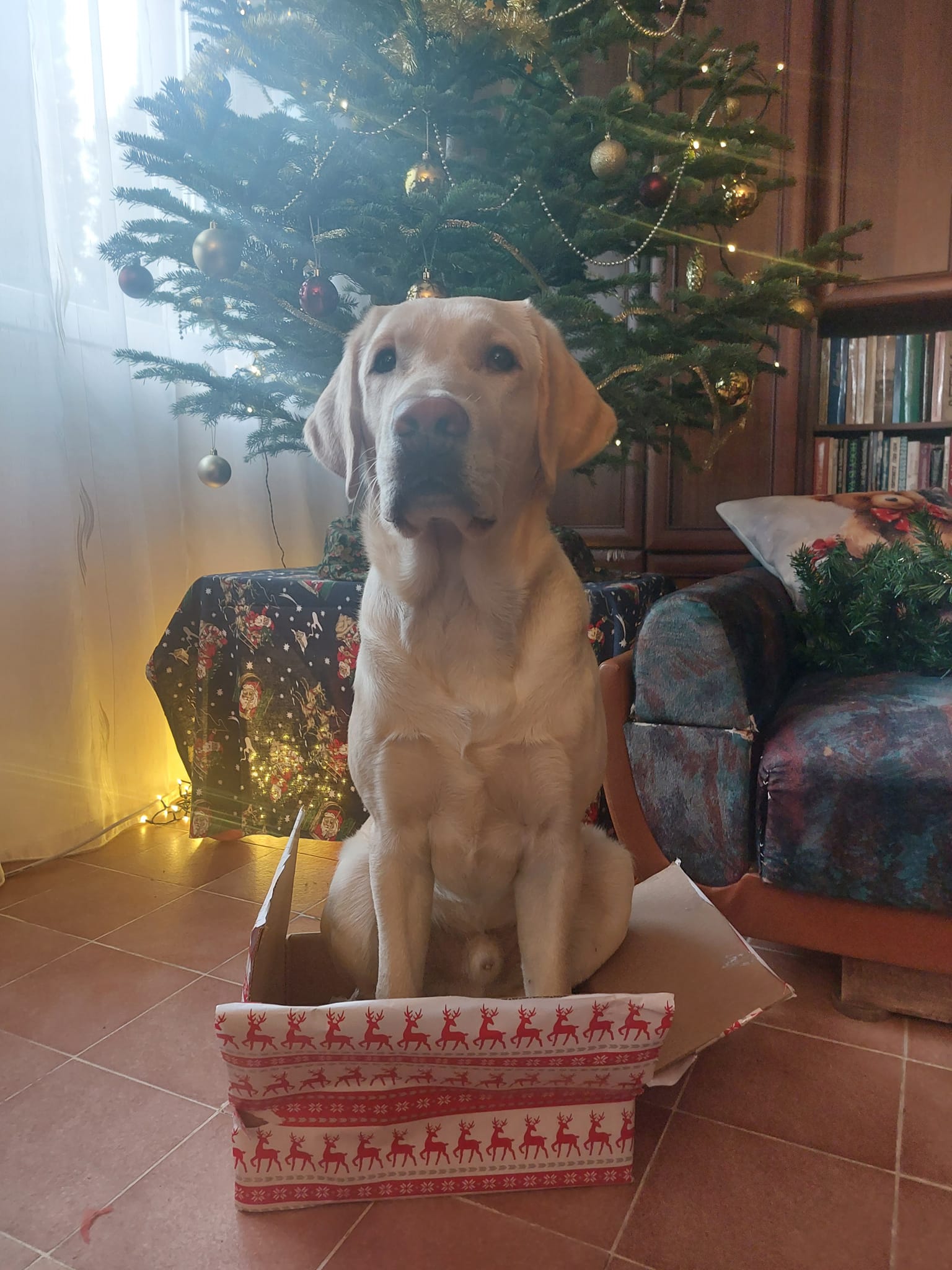 Bukfenc türelmesen kivárta a sort, aztán sétált a hóesésben és részt vett a karácsonyfa-díszítésben is. Leendő vakveető kutyánk kölyöknevelője, Dóra osztja meg veletek karácsonyi élményeit a most 7 hónapos Bukfenccel.