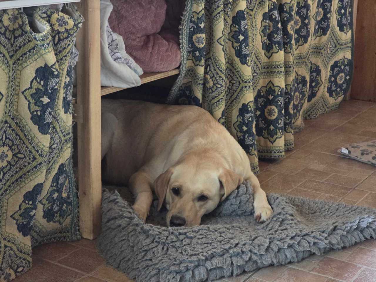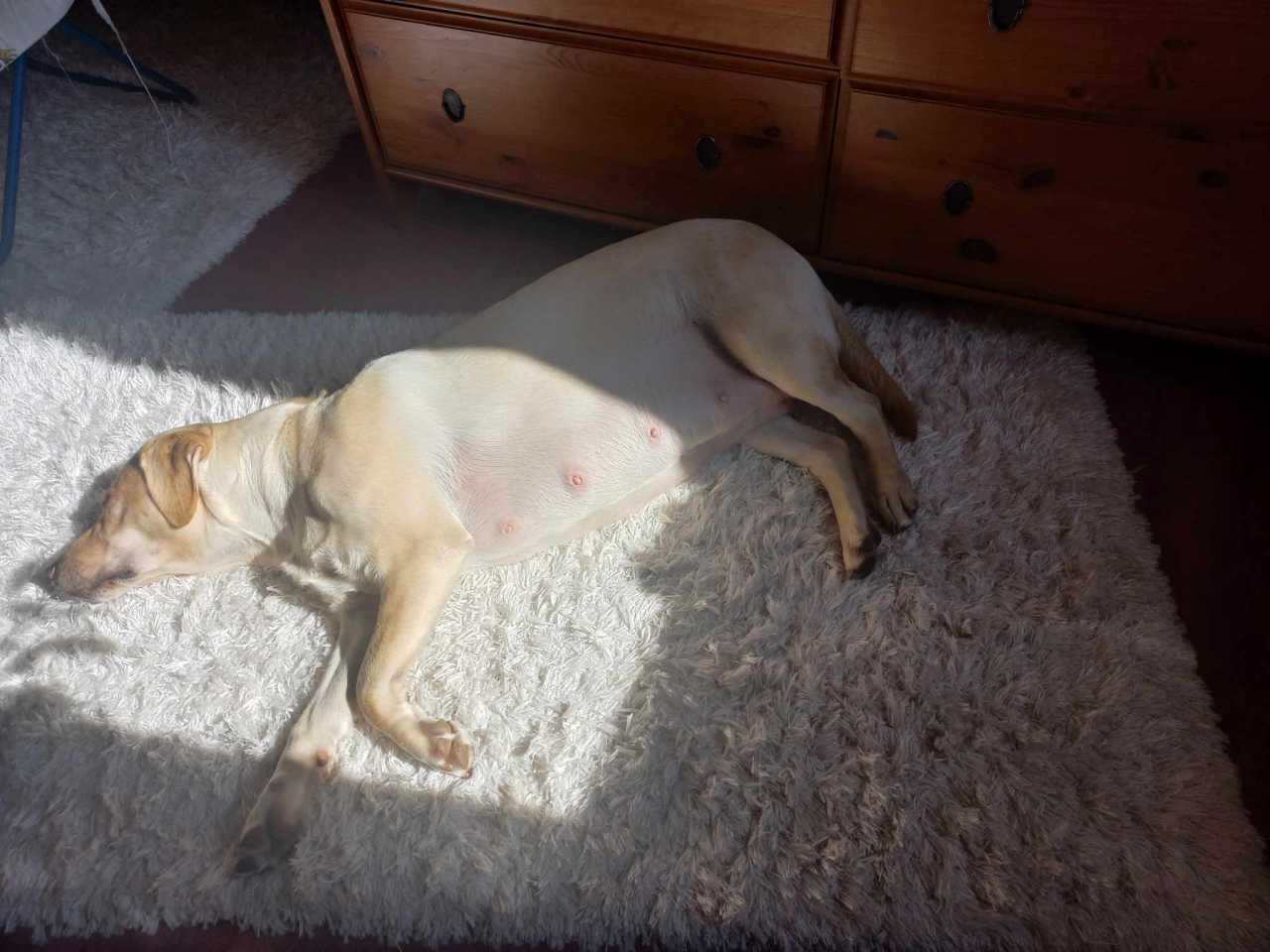 Azúr jól viseli a terhessége utolsó szakaszát, aktív, sétál, de azért egy hete egyre lassabb tempóban. „Már nyugtalanabb volt és elkezdte a fészekrakást, ami azt jelenti, hogy kapart, összehordta a takaróit, ez azt jelenti, hogy közeleg az ellés. Aztán eltelt 5 nap, és nem indult be. Mindennaposnak számít most már.