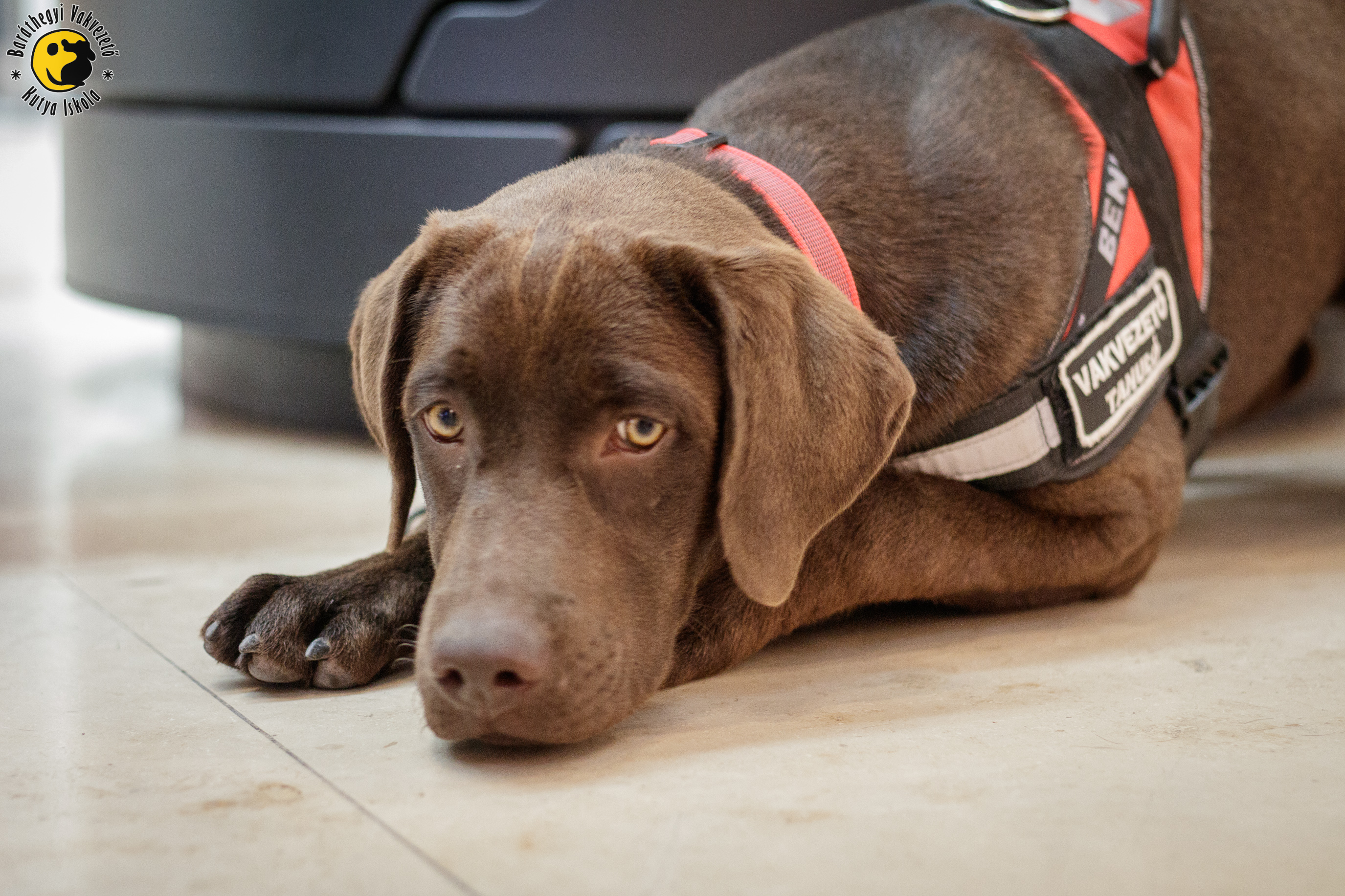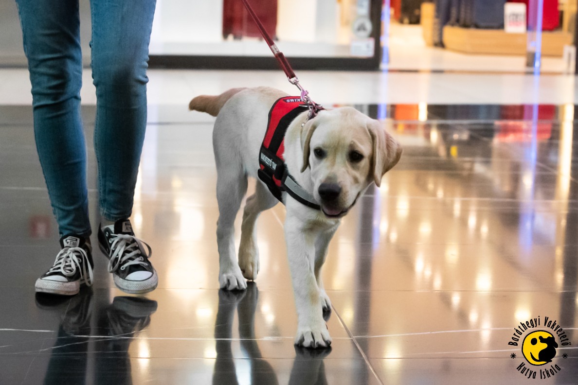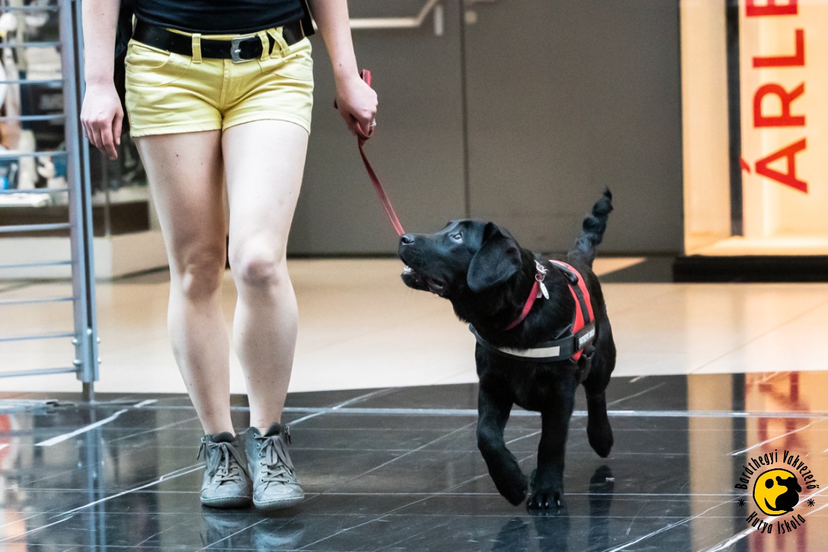 Minden vakvezető tanulónak a kölyöknevelőkre kell figyelni, miközben rengeteg érdekesség jön szembe velük. A tömeg, a többi kutya, az illatok, a különböző felületű padlózat mind-mind felfedezni való. Lenne. Azonban egy vakvezető kutya nem zökkenhet ki semmilyen körülmények között sem, amihez persze rengeteg gyakorlás szükséges. Azok a kutyusok, akik nem hagyták magukat eltéríteni, jutalomfalatot és hatalmas dicséretet kaptak. A rutinosabbak farokcsóválva, kölyöknevelőjükre emelt tekintettel meneteltek végig a folyosókon.