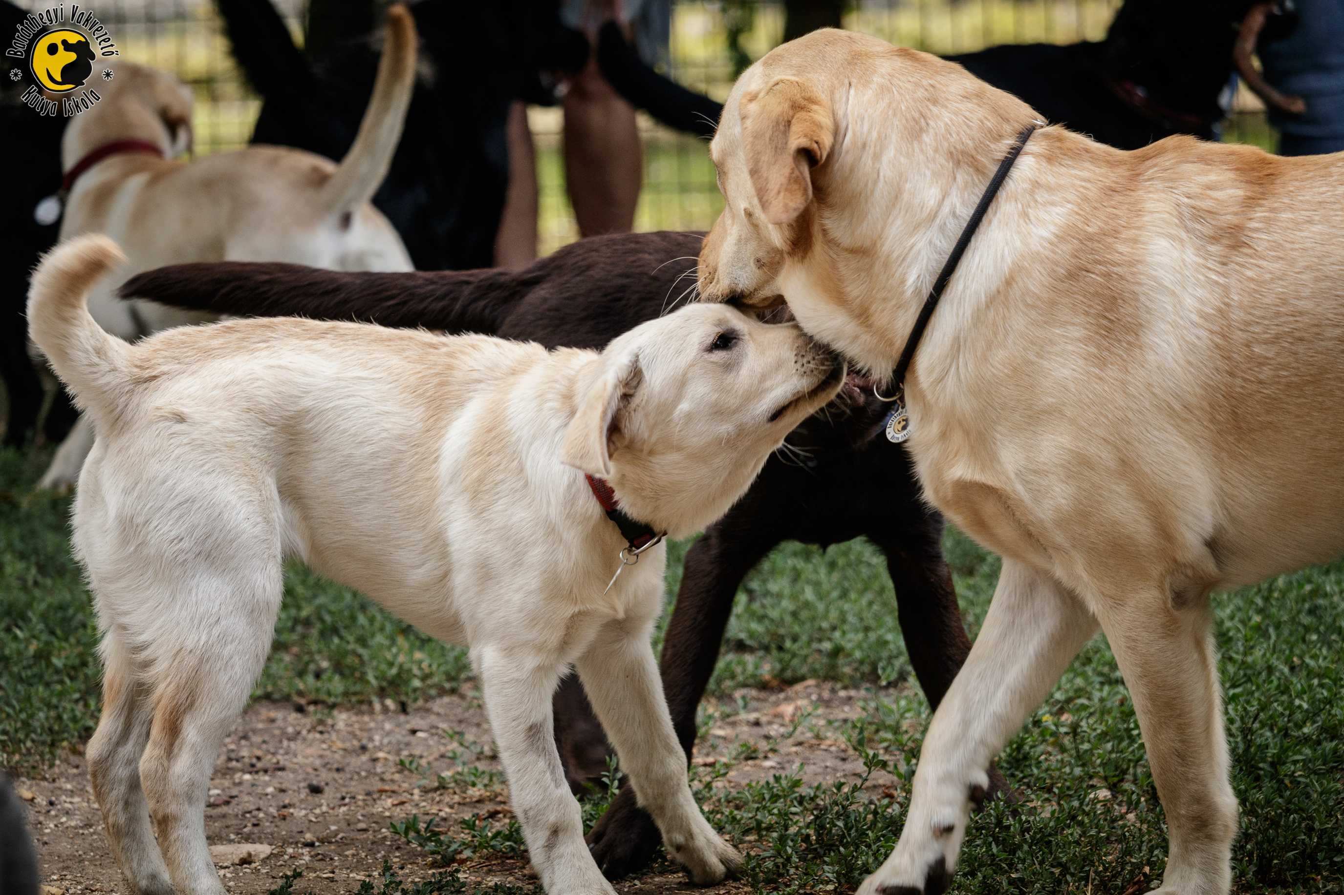 Az időjárás szerencsére éppen megfelelő volt ahhoz, hogy a kölyöktalálkozót önfeledt játékkal indítsuk a Bikás Park egyik futtatójában. Számos M betűs kutyánk eljött, az immár féléves L betűsök, valamint Alma és Artúr, illetve néhány K betűs, akik hamarosan a képzés egy következő lépcsőfokára lépnek, és kölyöknevelőiktől kiképzőinkhez költöznek. A kutyák most is hatalmas örömmel fogadták egymást, fogócskáztak, bunyóztak, sárban lubickoltak.