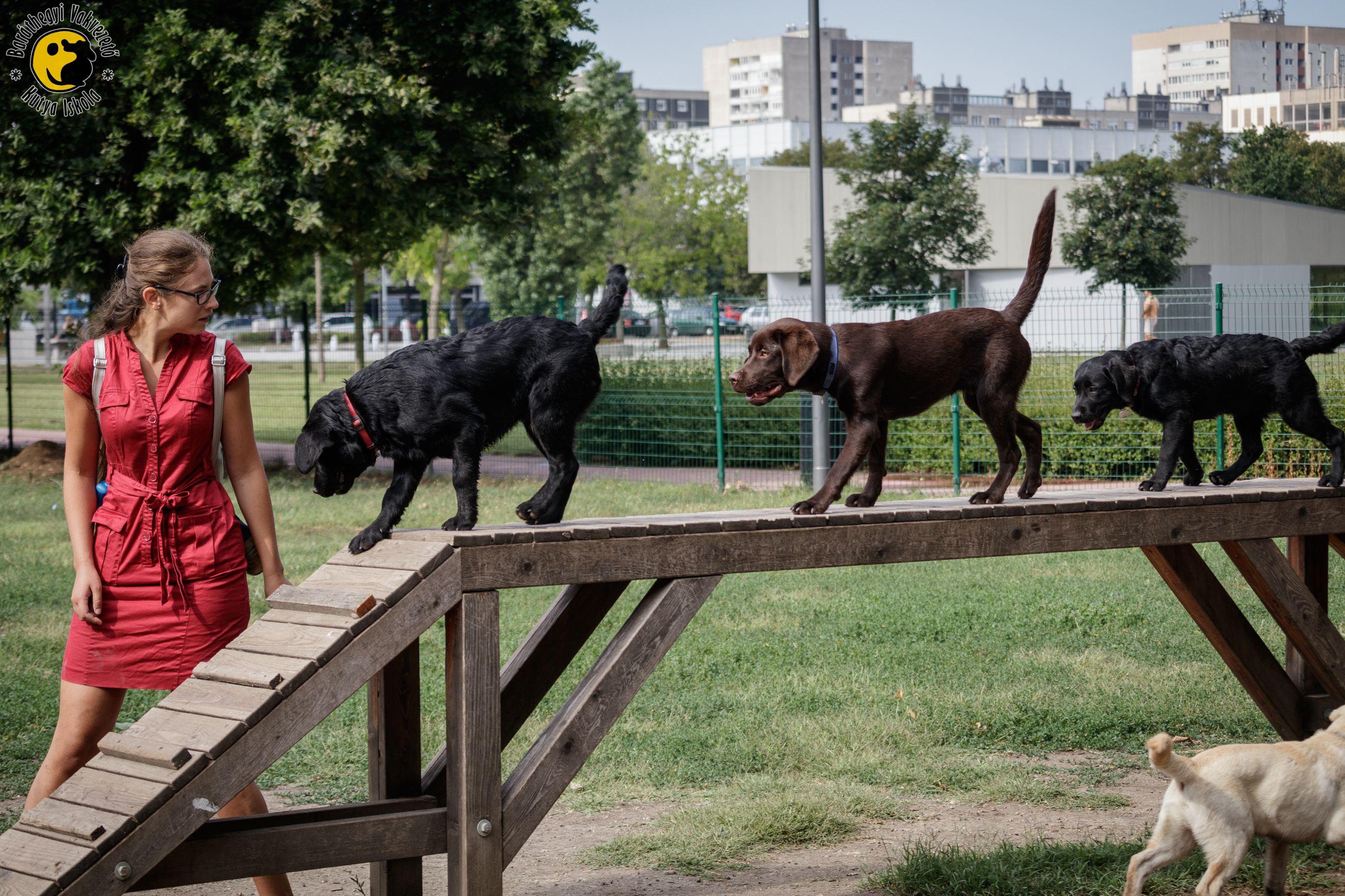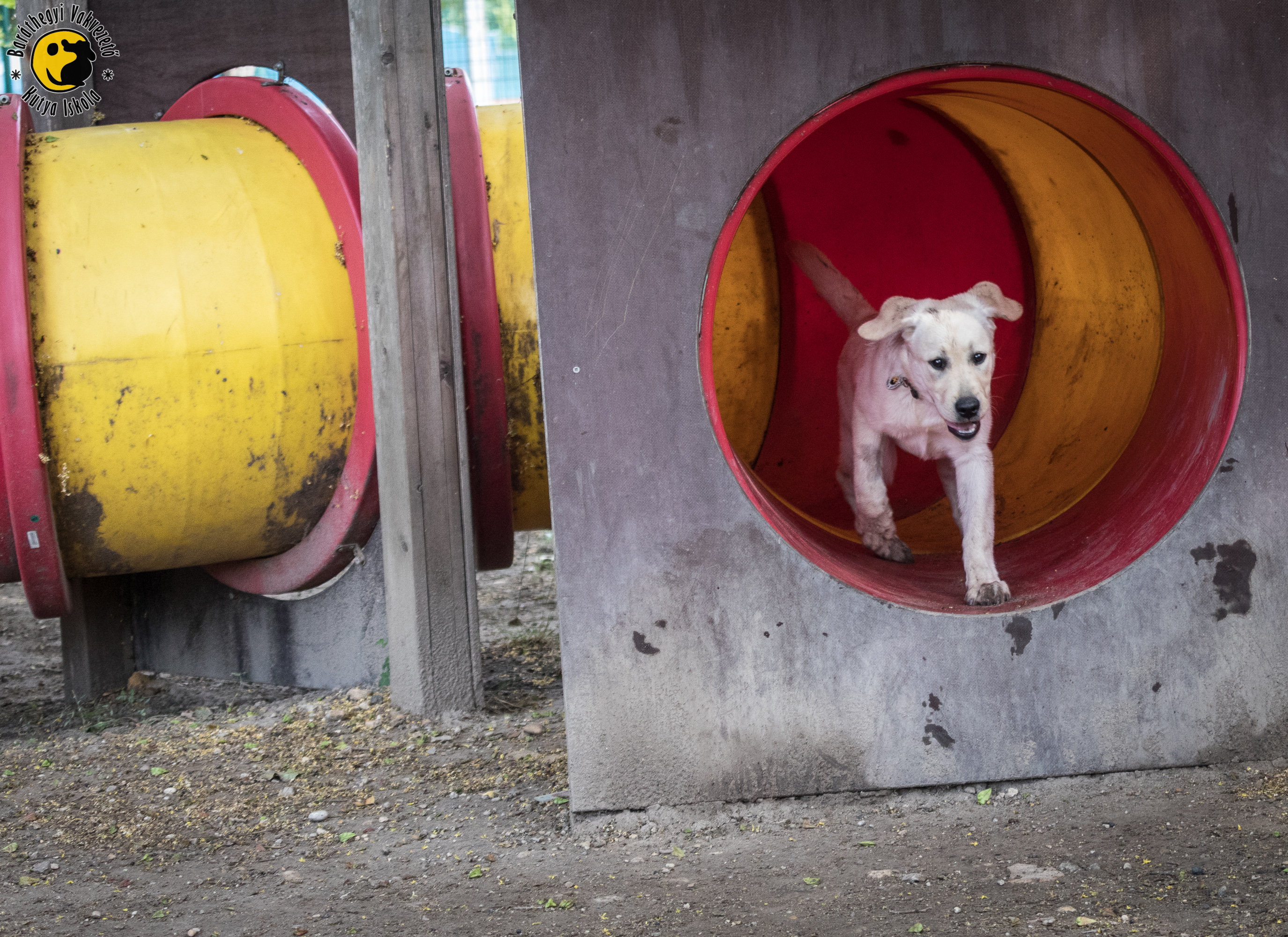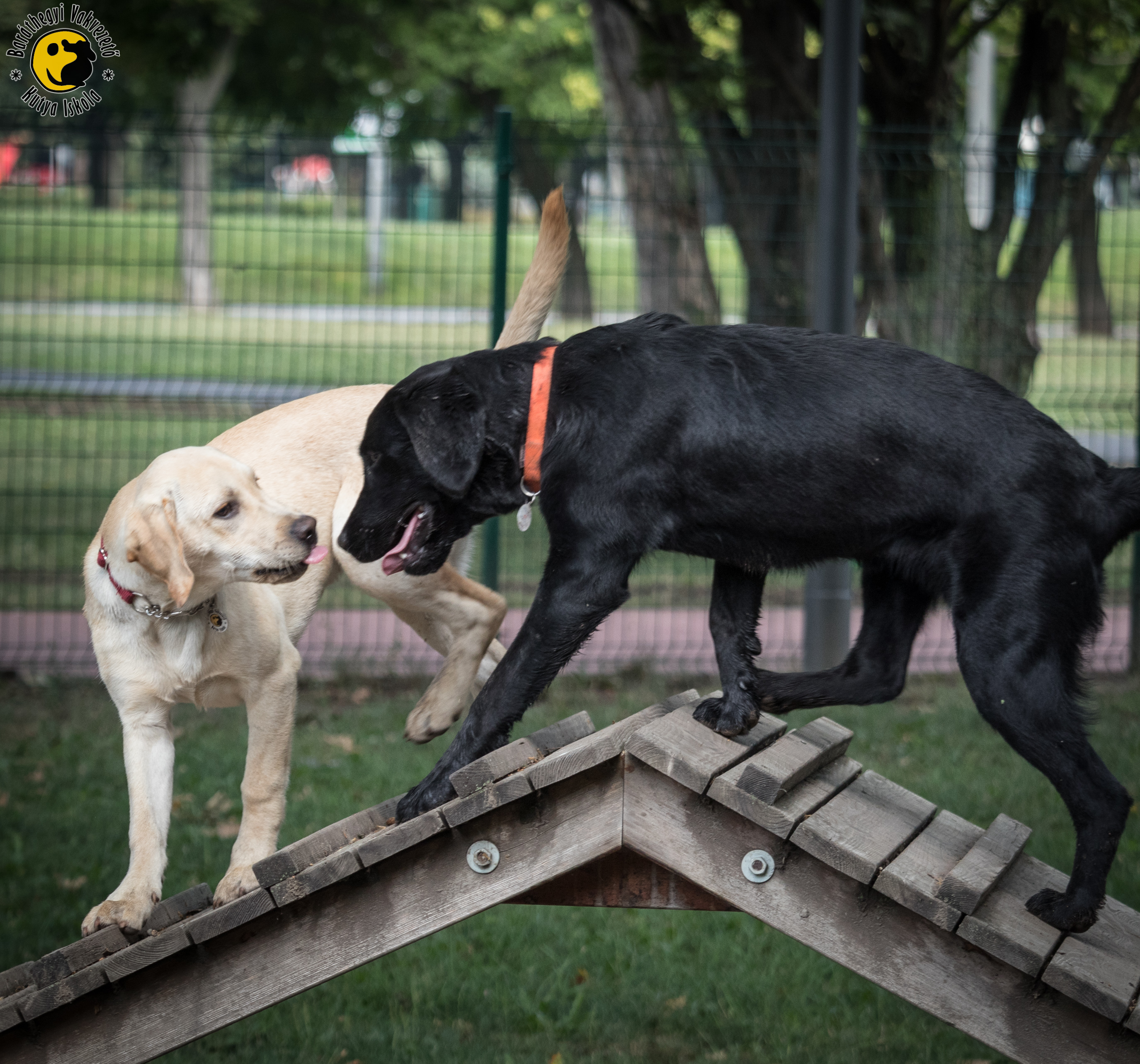 A futtatóban lévő eszközöket kíváncsian fedezték fel labradorjaink, mindent kipróbáltak. A kicsit csúszós műanyag alagutat először bátortalanul közelítették meg, de aztán sok lúd disznót győz alapon egymás után, szinte tolakodva próbáltak minél többször átjutni rajta.