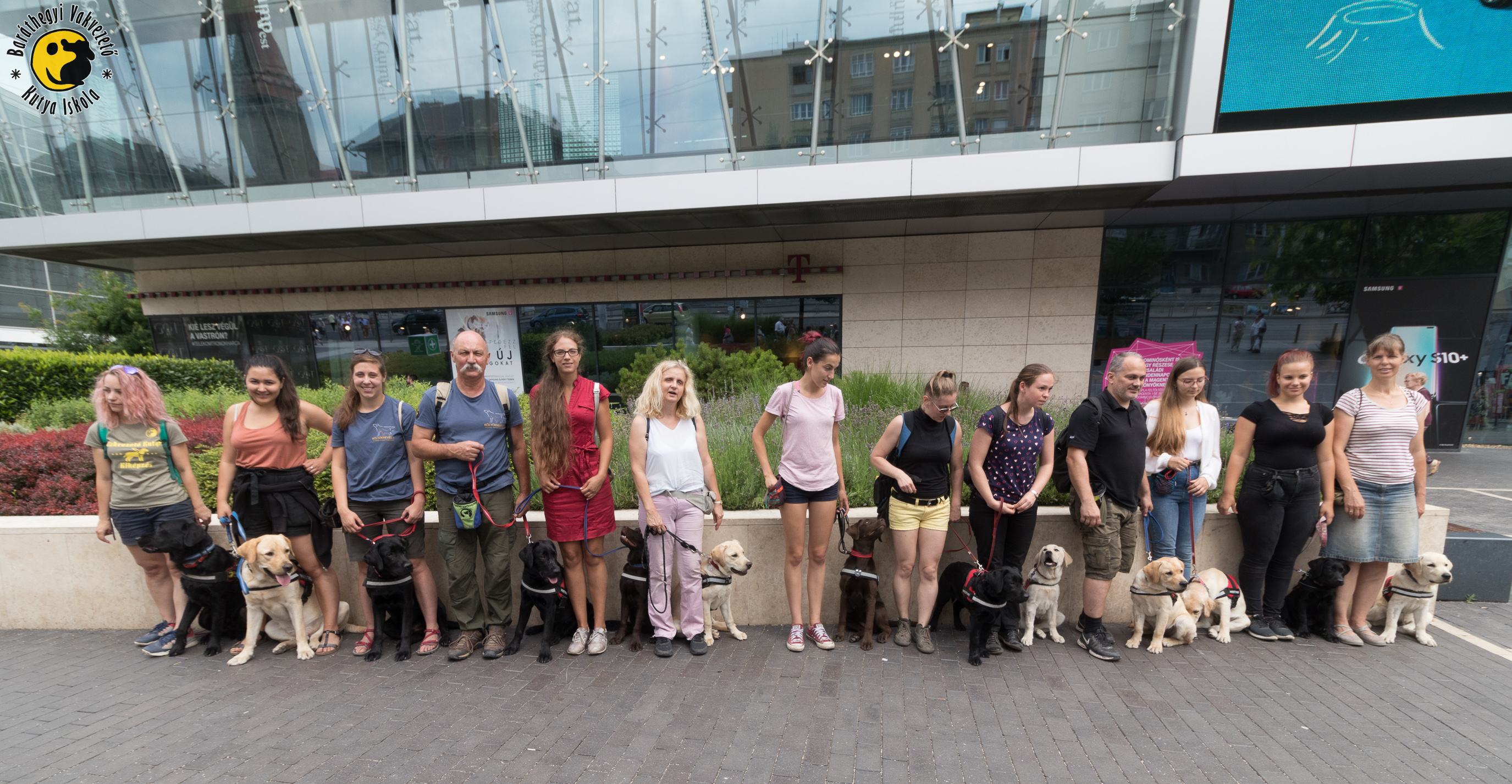 Honnan tűnhet fel, hogy kölyöktalálkozót tartunk? Sok vidám kutya és mosolygós gazdi gyűlt össze egy helyen. Persze a munka a legfontosabb, mert ilyenkor erősítjük a vakvezető tanulók és a kölyöknevelők közötti kapcsolatot. Kiképzőink sok érdekes feladattal készülnek, és arra is figyelmet fordítanak, hogy a kutyák szokják a tömeget és mindenféle külső ingert, ennek érdekében júliusi találkozónkat az Allee bevásárlóközpontban tartottuk meg.