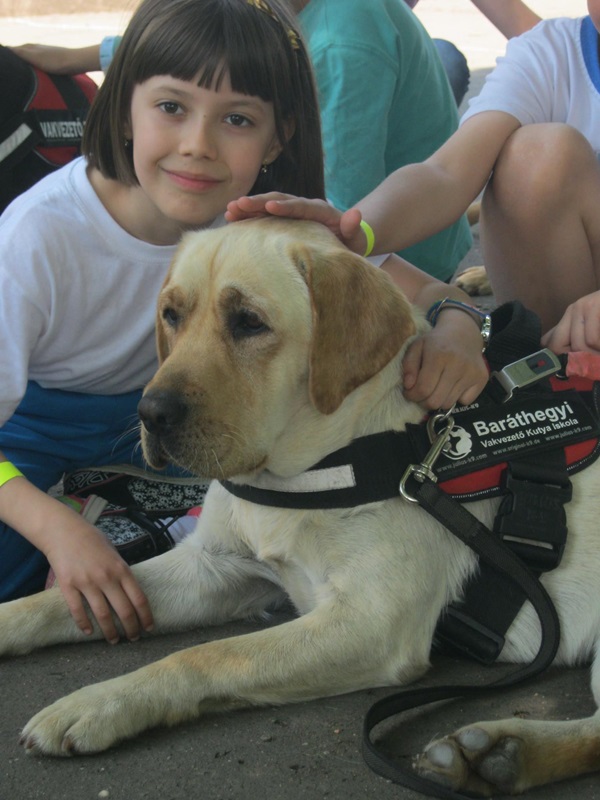 Students had come to realize that guide dogs can offer their owners much more help than an inanimate tool. In a mere two hours several students got acquainted with our dogs -in-training, Bogi and Zorien, as well as our puppy-in-training Fecske. They would like to thank for the many caresses they received.