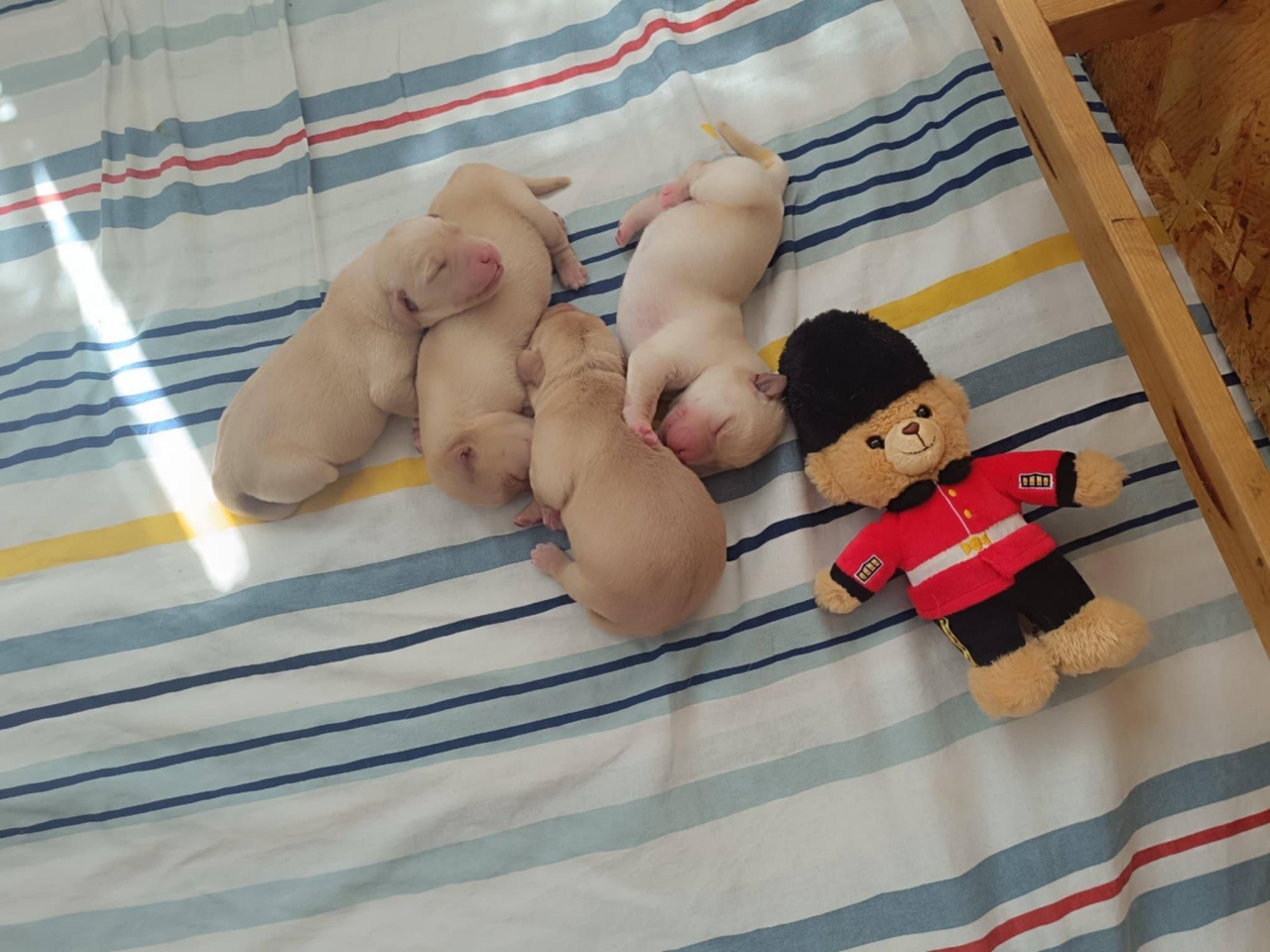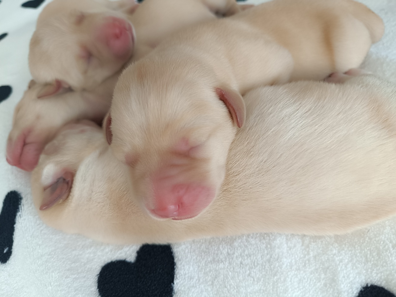 This week, Azúr gifted us with four beautiful puppies. Everyone is doing well — the three males and one female are eating and sleeping peacefully. The mother dog is taking exemplary care of them.