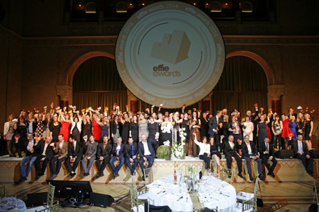 In the picture under the huge Effie Award logo the award-winners are standing and sitting.