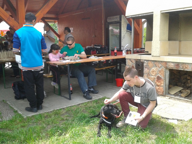 On Saturday, 9 May, we participated in a children’s rights road show called “Gyere-K-épbe” (Come into picture) at the University of Miskolc. Children, their accompanying foster parents and children’s home experts participated in the event. Children and adults alike were interested in the everyday life of visually impaired people and guide dogs. Many interested, brave visitors could even try out what it feels like to walk blindfolded with a guide dog, this time with Delta, a demonstrator dog.