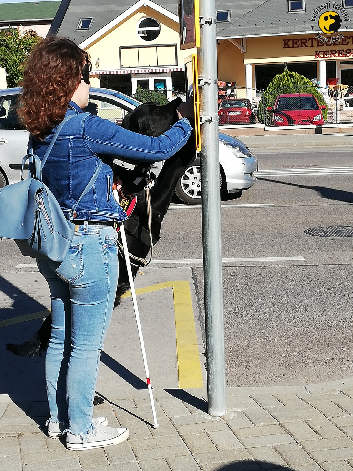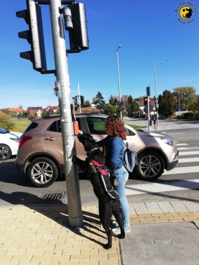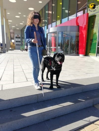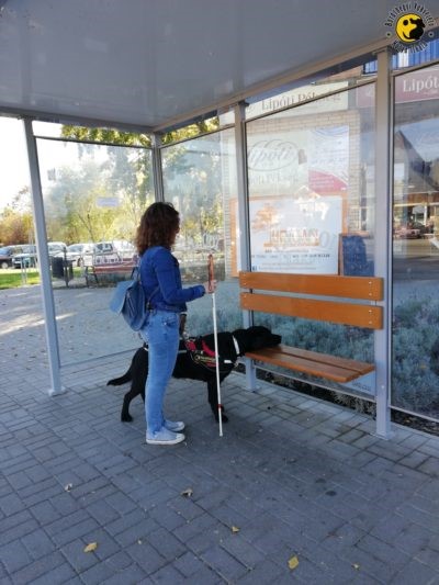 After approx. 20 hours spent with practice there is an exam where the trainer’s eyes are covered. The team completes the route practiced before within approx. an hour. The exam includes tasks such as unleashing and recalling, searching for a bus stop, getting on a vehicle, searching for a free seat on the bus, staying in place in a disturbing environment, searching for a crosswalk and crossing the road safely, etc.