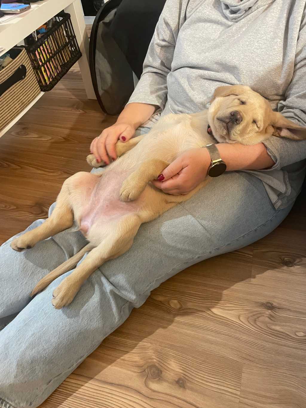 Zsófinak szinte csak alvós képe van Frappéról, aminek megvan az oka: elég ugrabugra a 9 hetes labrador, ezért akkor könnyebb fotózni, amikor elnyomja az álom. Horváth Zsófia alapítványunk kölyöknevelője nővér volt korábban, sok látássérült emberrel találkozott a munkája során, tőlük hallott arról, hogy könnyebb az élet vakvezető kutyával, de kevés van belőlük. Eltelt egy kis idő, és végül elhatározta, hogy segíteni fog a vakvezető kutyára váróknak.