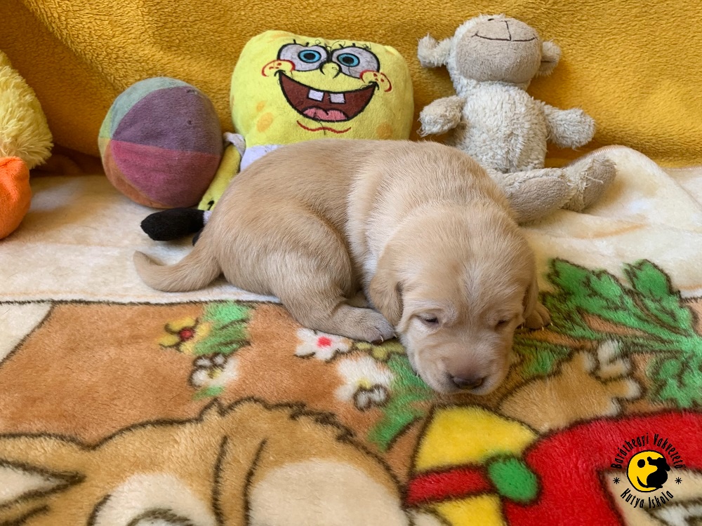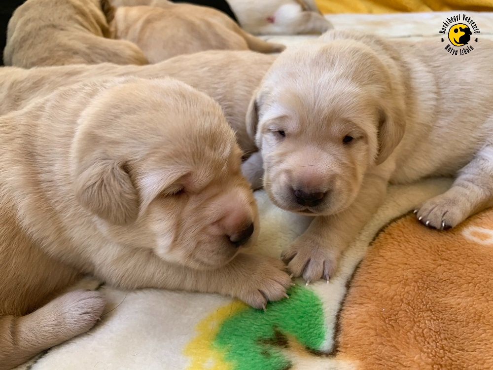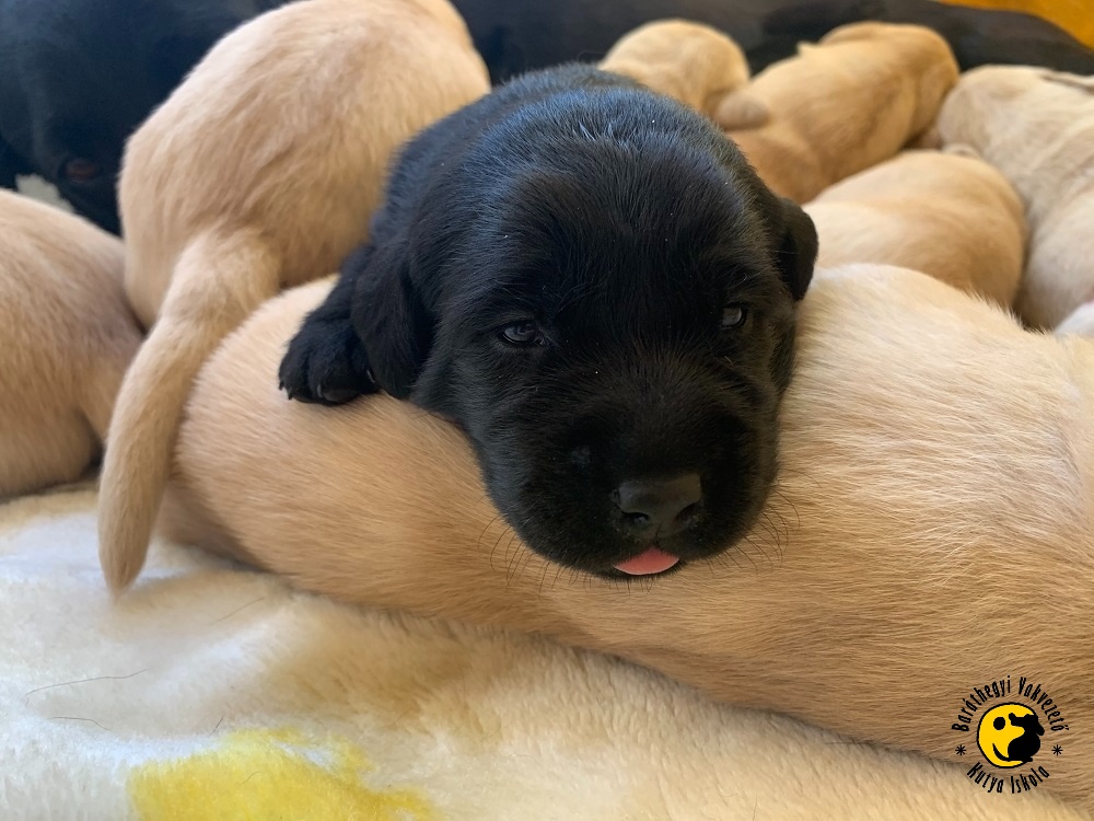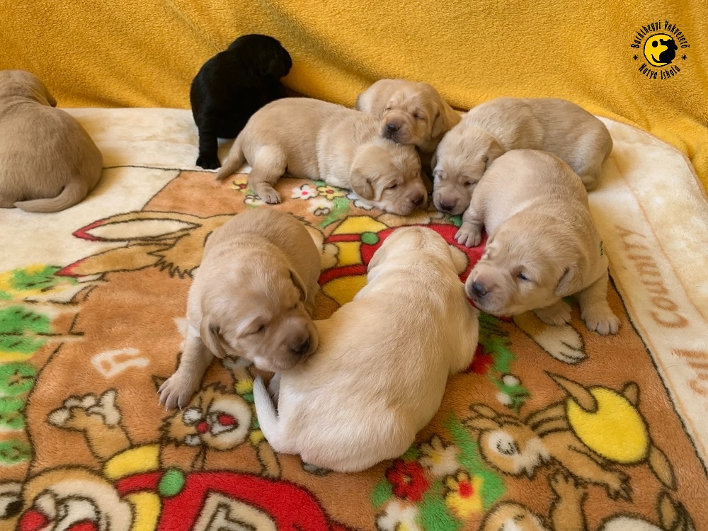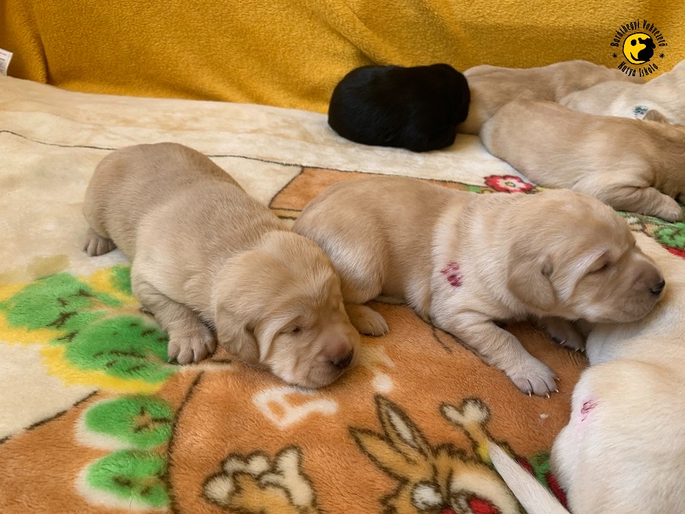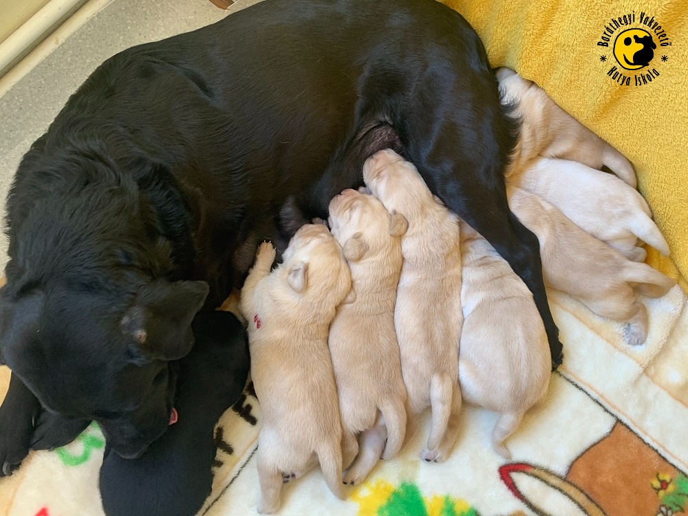 Calgary március 7-én adott életet 8 apró szőrgombócnak. Összesen 1 fekete, 7 sárga labrador született a T-betűs alomban. 3 fiúcska lett, az egyetlen fekete kölyök kislány. Mamakutyánk azóta is szorgalmasan ellátja a kicsiket, tisztogatja és lelkesen szoptatja őket.