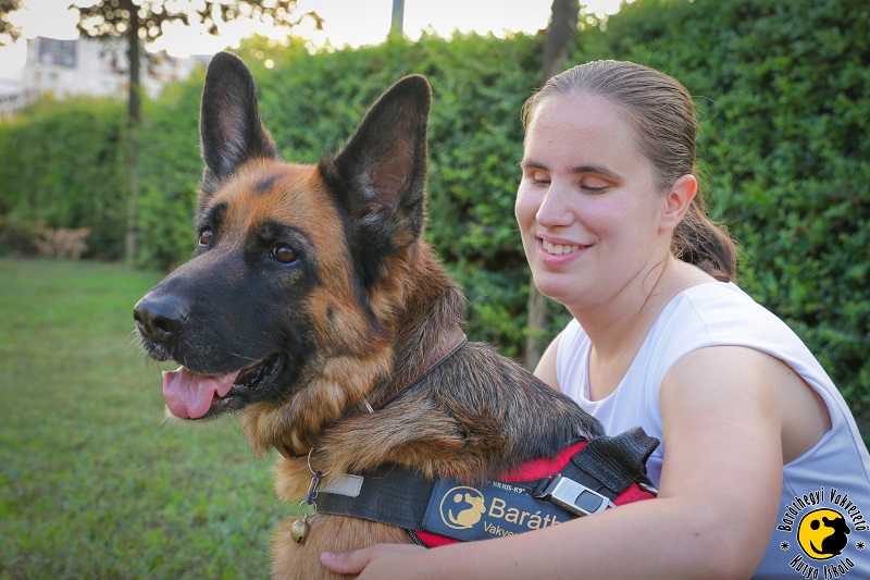 „Maxi most már azt mondja, hogy úgy hiányzik neki Dandzsi, amikor iskolában vagyunk, hogy kell neki egy plüsskutya, amit simizhet, amíg hazaérünk. A Baráthegyi Vakvezető Kutya Iskola megtudta ezt, és adott Maxinak egy plüsskutyát, amin nagyot nevettünk” – mondja nevetve Annamari, aki az ELTE-n tanul francia szakon.
