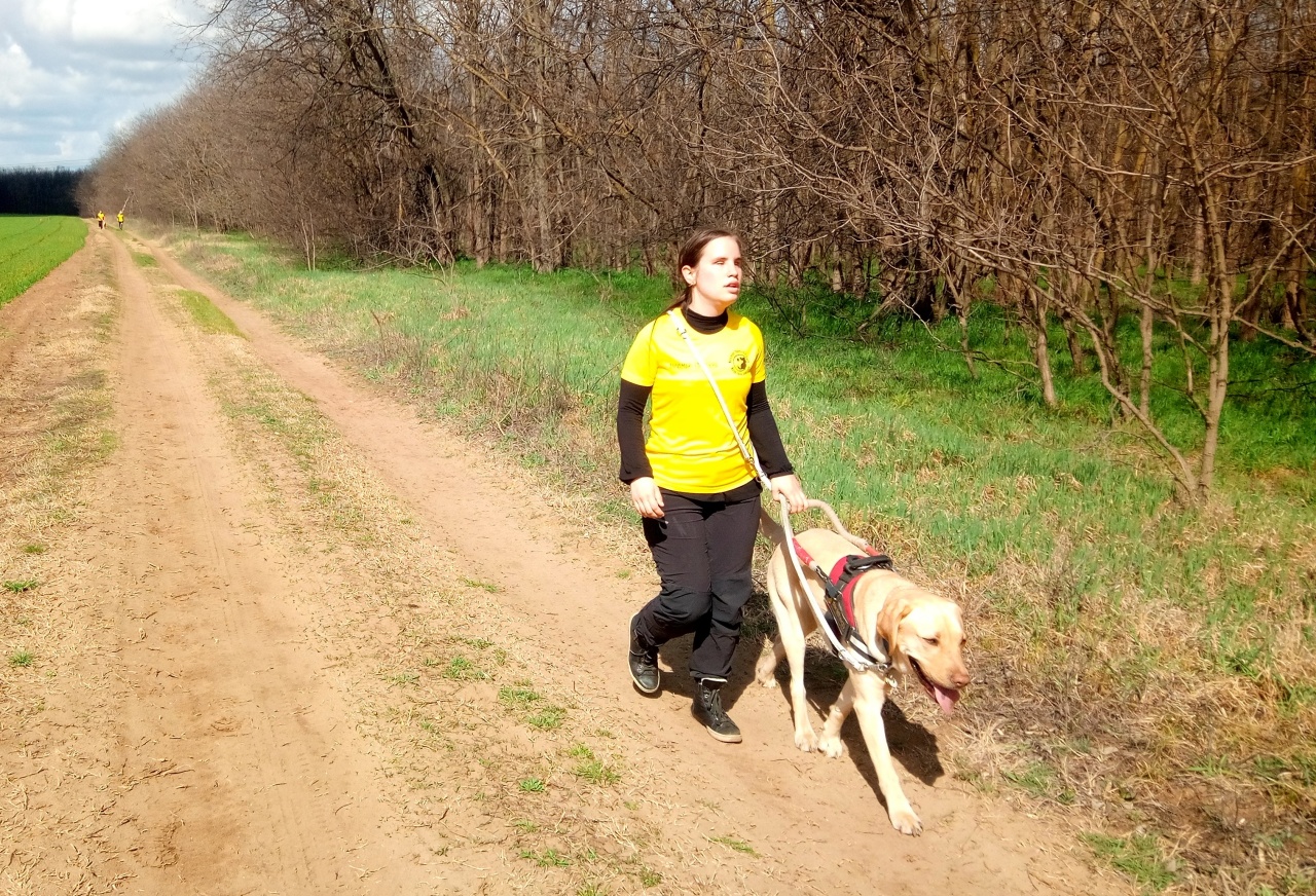 Annamari és Szikra tagja a Baráthegyi Vakvezető és Segítő Kutya Iskola népes futócsapatának. Éppen egy tavaszi futóversenyre készülnek.