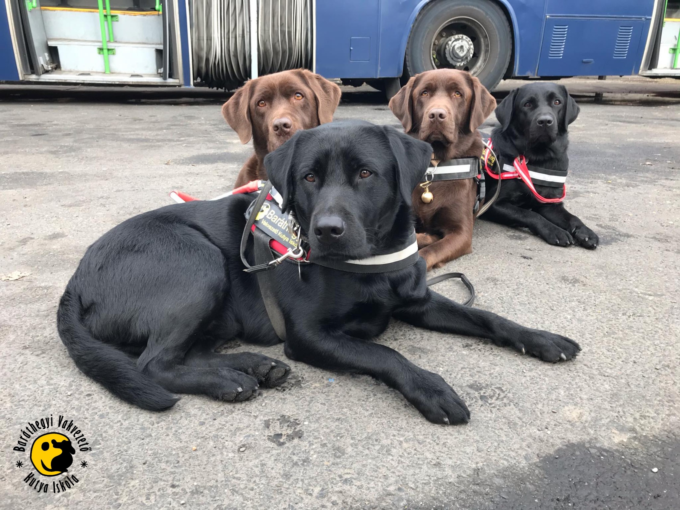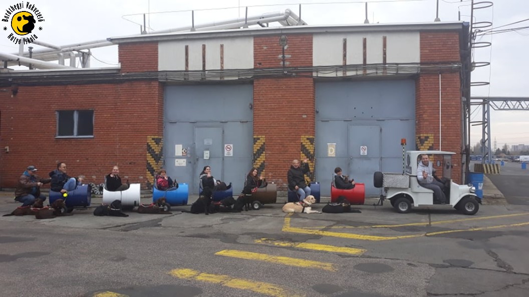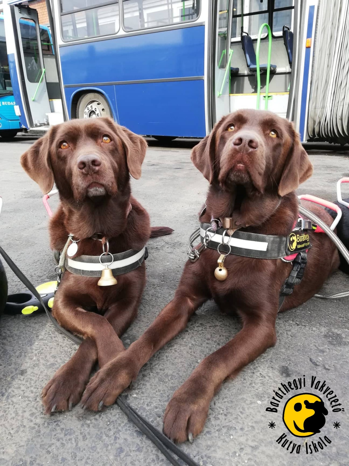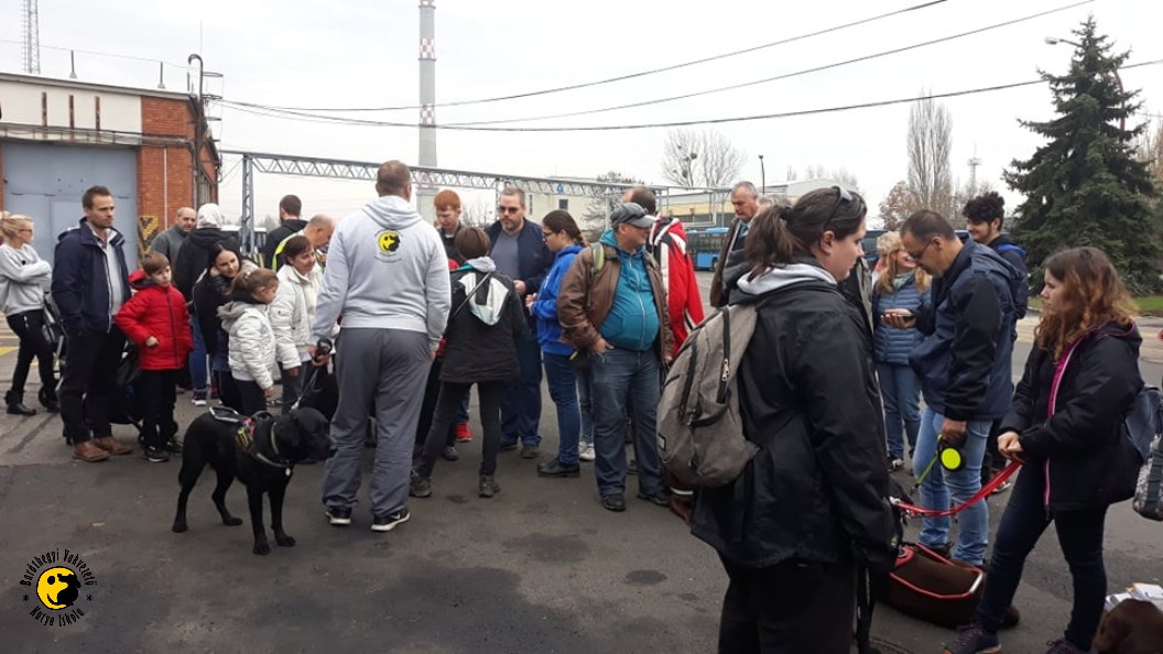 Már levizsgázott vakvezető kutyákkal és vakvezető tanulókkal érkeztünk meg a BKV óbudai autóbuszgarázsába. A buszsofőrök és családtagjaik kipróbálták, hogyan lehet felszállni egy buszra letakart szemmel, vagy milyen érzés néhány métert sétálni egy kutyára bízva magukat.