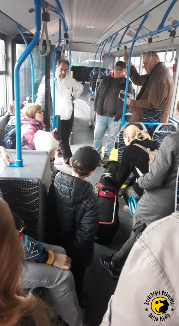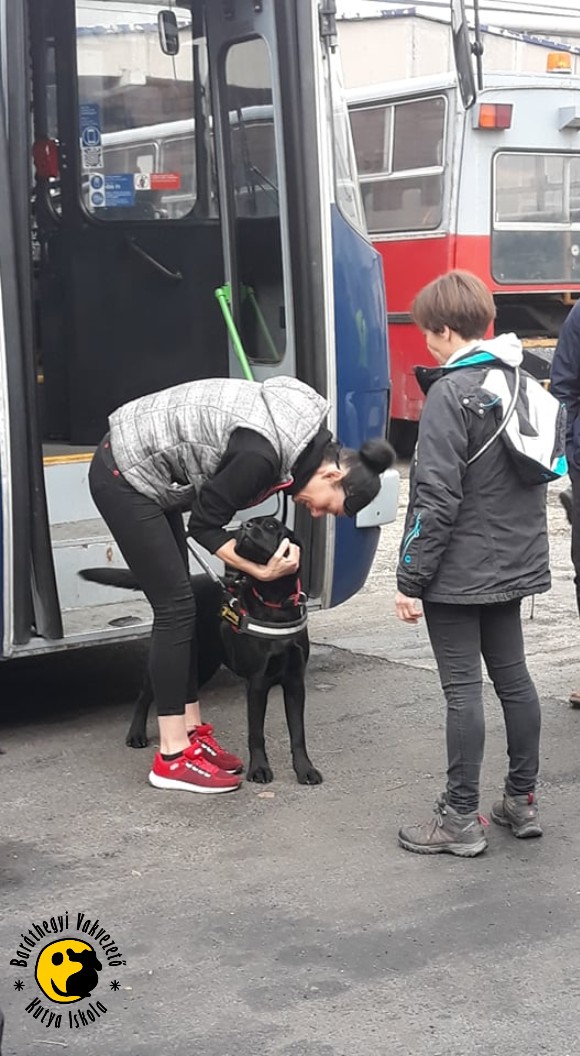 Nagyon örültünk a meghívásnak, hiszen a tömegközlekedési eszközök használatakor számos nehézség adódik a segítőkutyával utazók számára: nincs elegendő idő a felszállásra, nincs ülőhely, vagy esetleg felmerül a kérdés, miért nincs szájkosár a kutyán? (Ez utóbbira, amilyen gyorsan tudunk, válaszolunk is, hiszen jó, ha minél többen tudják, hogy a vakvezető kutyáknak törvényi előírás szerint nem kell szájkosarat viselnie.)