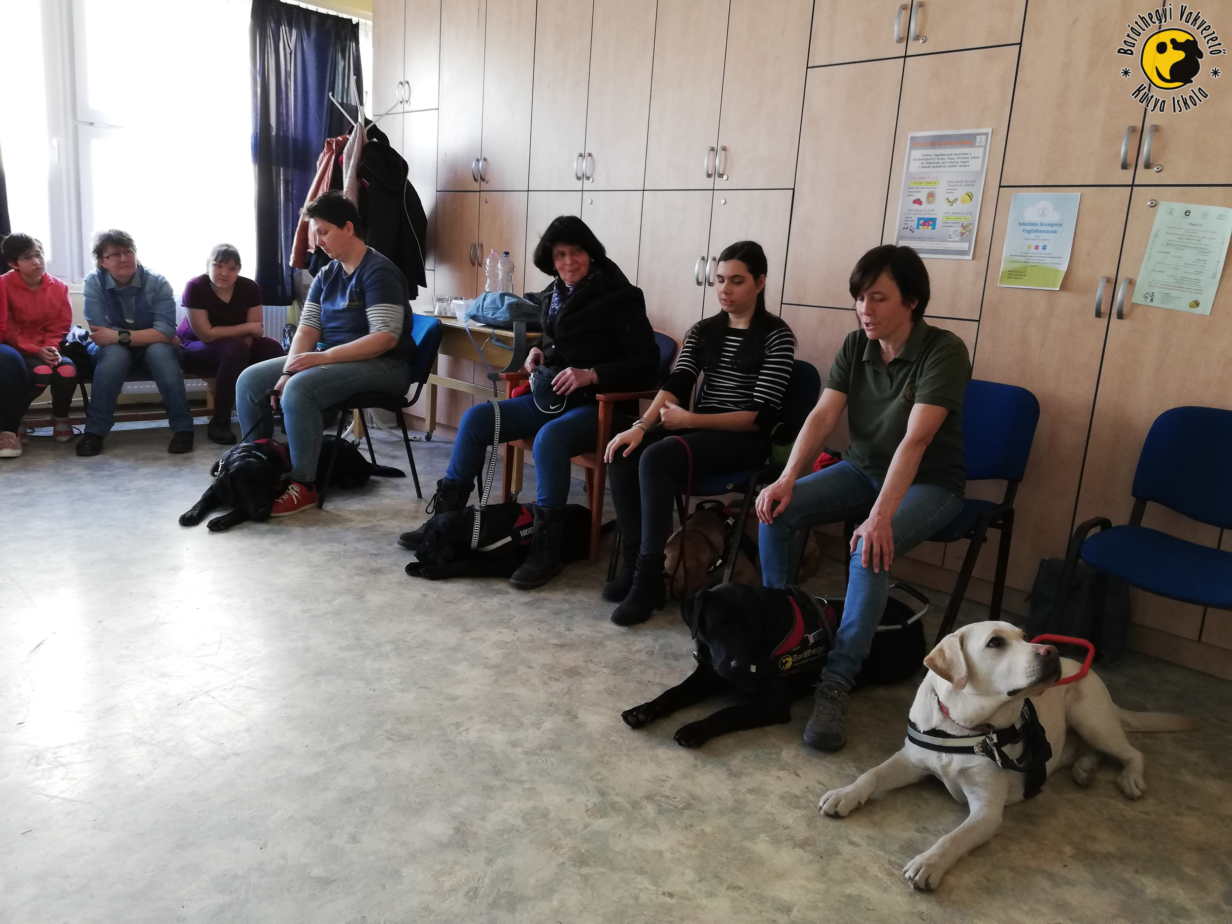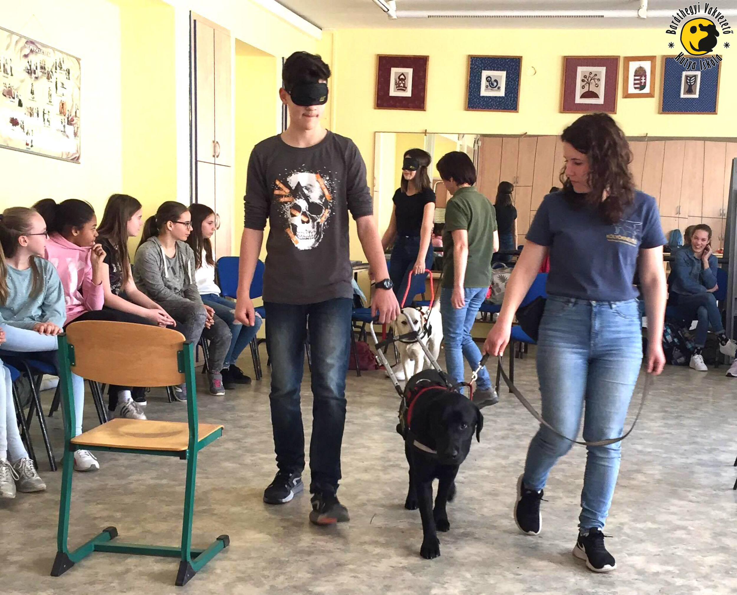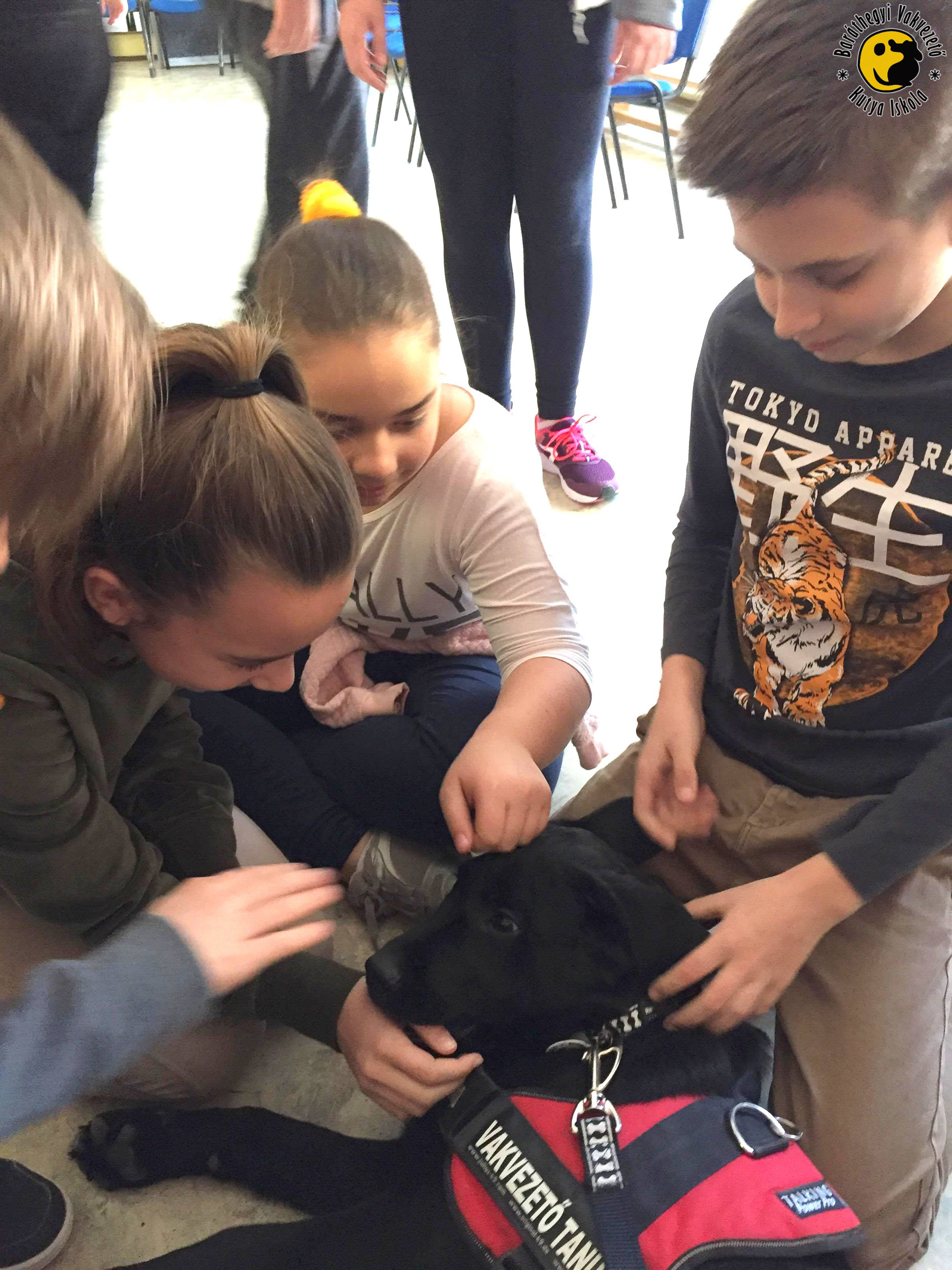 A gyerekek nagy örömmel fedezték fel, melyik életkorban lévő kutyus milyen képzettségi szinten van. Beszélgettünk a vakvezető kutyákról, kipróbálhatták, milyen, amikor egy vakvezető kutyára bízzák a lépteiket. A kiképzésének végén járó Ikon a séták befejezésekor egy székhez vezette a gyerekeket, hiszen ő már tudja, hogyan kell majd felajánlani az ülőhelyet leendő látássérült gazdijának. Az egyik kislány, aki szemfülesen megértette, mi történik, így reagál erre: „Jaj, de édes, odavezetett a székhez!”.