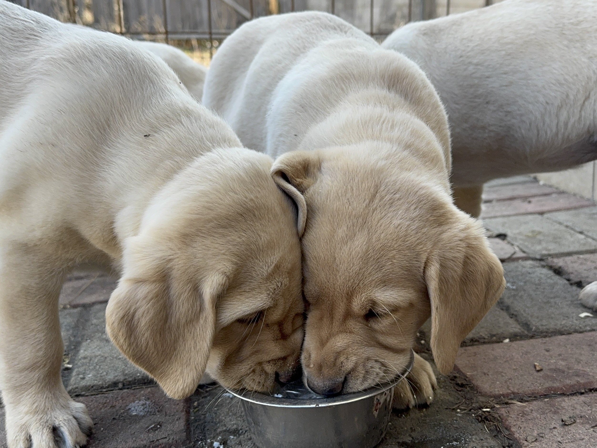 A kicsiknek hatalmas az étvágyuk, de egyre kevesebbet szopiznak, és az áztatott helyett száraztápot esznek. Ők ennek is nagyon örülnek, körbe-körbe forognak az etetésnél, mintha egy igazi kis táncolós vacsora kezdődne. Nemcsak a szilárd étel fogy nagy mennyiségben, hanem a víz is – annyira szeretik a pancsolást, hogy a vizes tálból nemcsak isznak, hanem pancsolnak is benne.