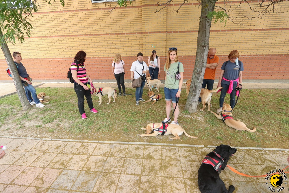 Serpa, Szikra, Szellő, Szezám és testvéreik a hozzájuk csapodó Rézivel a buszra szállást gyakorolták a Campona bevásárlóközpontnál lévő buszvégállomáson. A közlekedés fontos szerepet játszik majd a képzésükben, nem torpanhatnak meg, ha egy tömegközlekedési járműre kell felszállniuk leendő gazdájukkal.