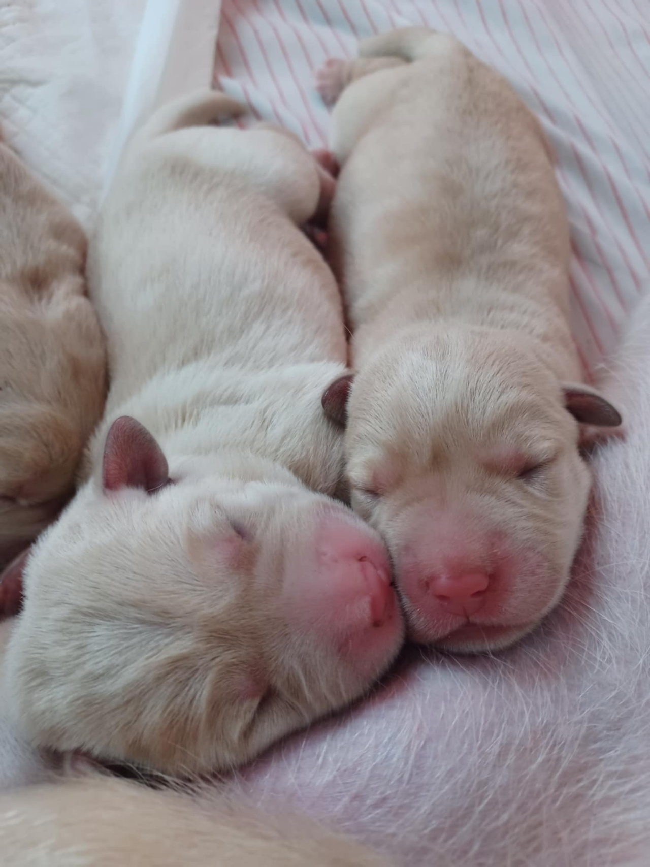 Már előző este elkezdett vackolni, éreztem, hogy közeleg a pillanat. Éjjel fél 2-kor jelezte, hogy szeretné, ha mellette lennék, majd délután azt mutatta, hogy minden rendben és csak másnap fog elleni, ezért elvittem egy nagy körre. A sétáról hazaérve beindult az ellés, és lassan, de biztosan érkeztek a kölykök. Az első kettő farfekvéses volt, ami lassította a folyamatot, de Borsó végig erős maradt. Eleinte nagy szemekkel nézett rám, nem értette, mi történik, de apránként belejött, és most már példás anyukaként gondoskodik róluk.