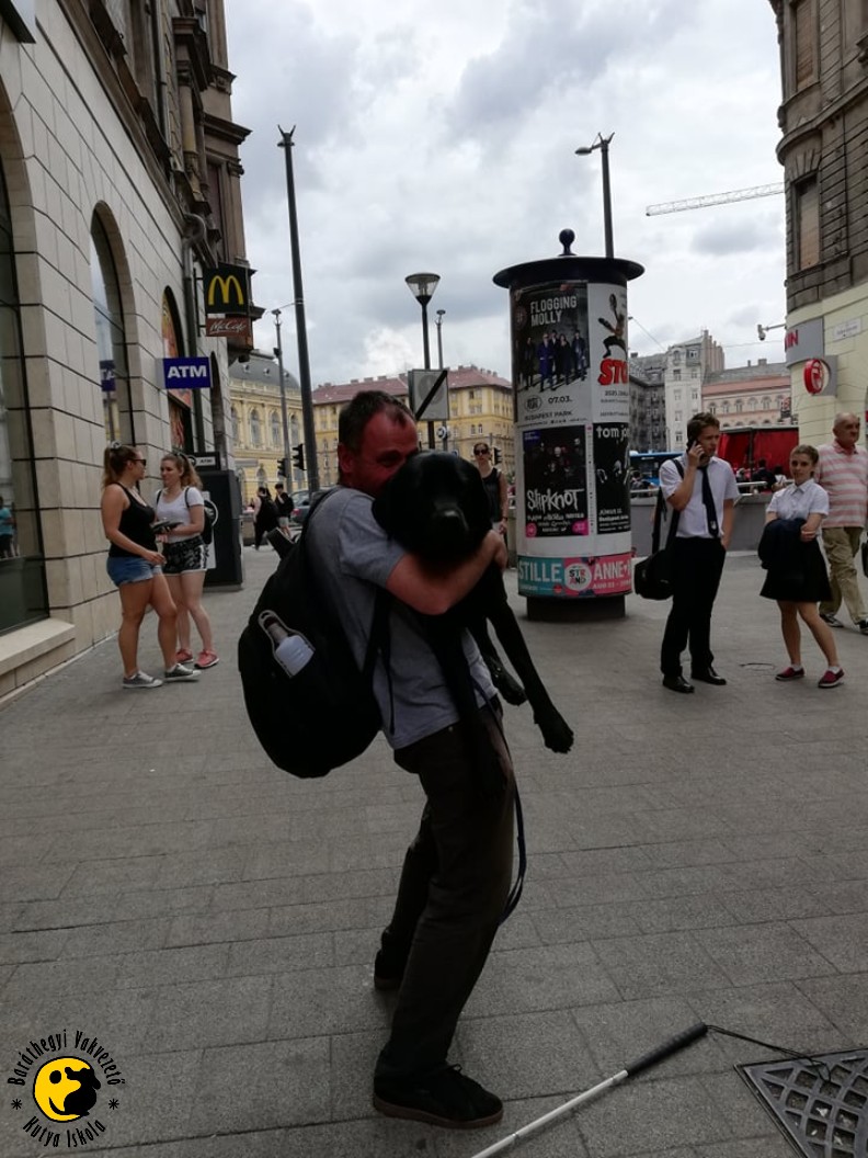 „Le a kalappal Szabolcs előtt. Január óta majdnem heti rendszerességgel járt Bécsből Budapestre, hogy vizsgát tudjon tenni. Felkapta a kutyáját örömében, amikor kimondták, hogy alkalmasak az önálló közlekedésre. Megható pillanat volt” – mondta kiképzőnk, Farkas Darinka.