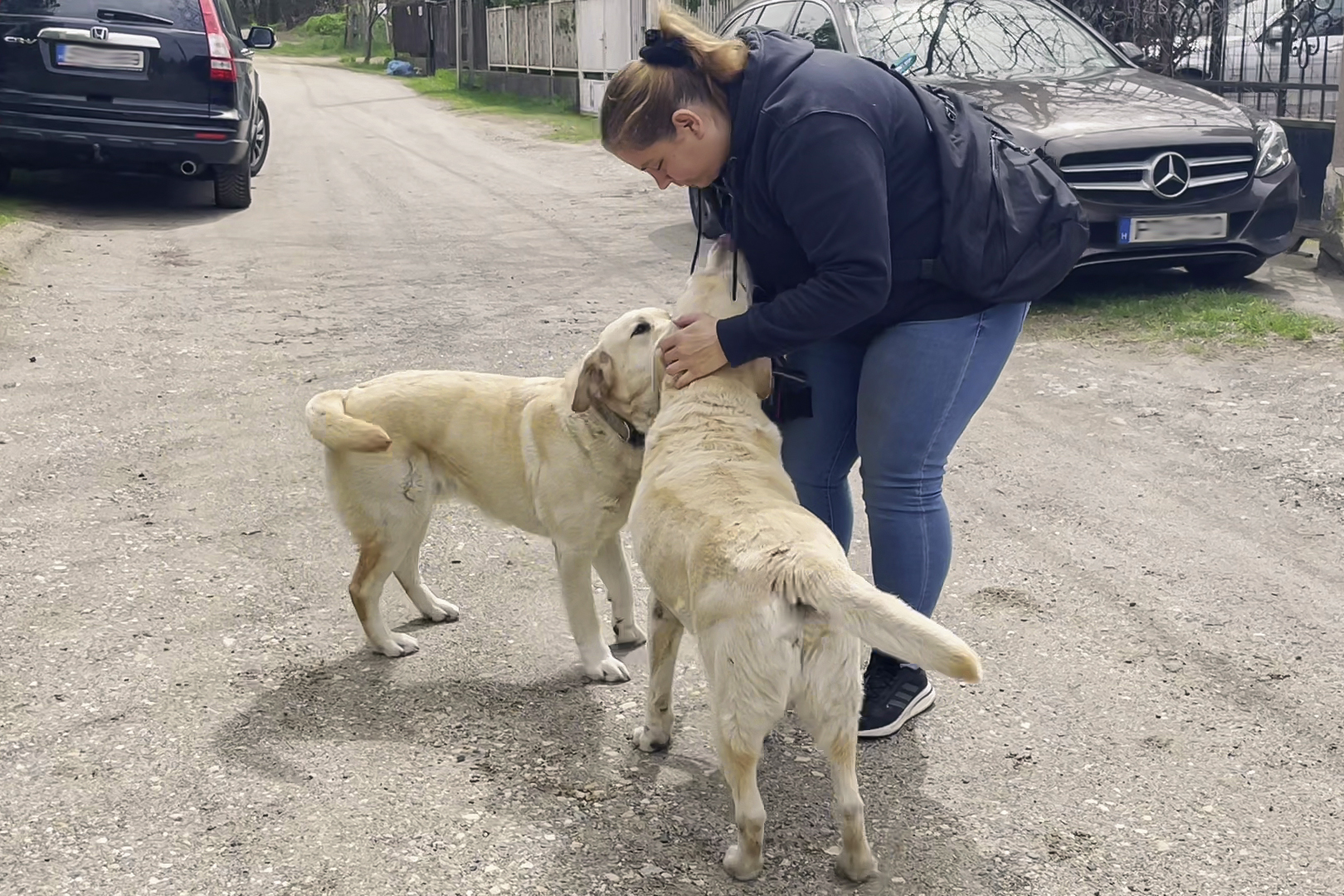 A két kutya szereti egymást, azonnal játszani kezdtek egymással. Berta Brigitta foglalkozása gyógy- és sportmasszőr, férjével és két gyermekével Csömörön él.