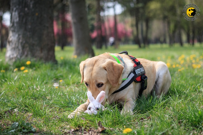 Derűs napot és boldog húsvétot kíván vakvezető tanulónk, Kiwi és a Baráthegyi Vakvezető Kutya Iskola!